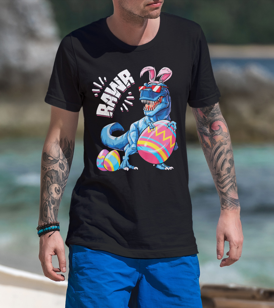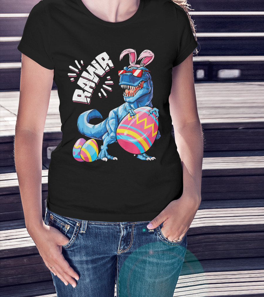 RAWR Easter Bunny Dinosaur T-Rex With Colorful Eggs T-Shirt