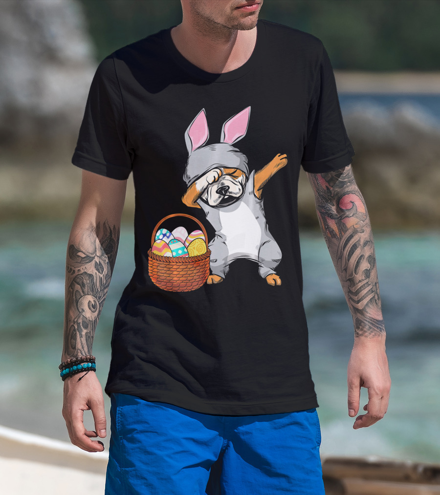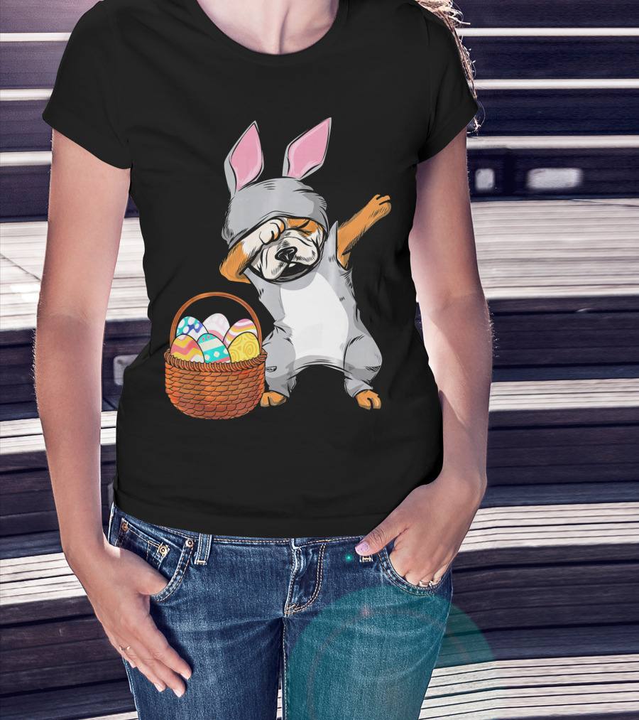 Dabbing Easter Bunny English Bulldog With Basket Of Eggs T-Shirt