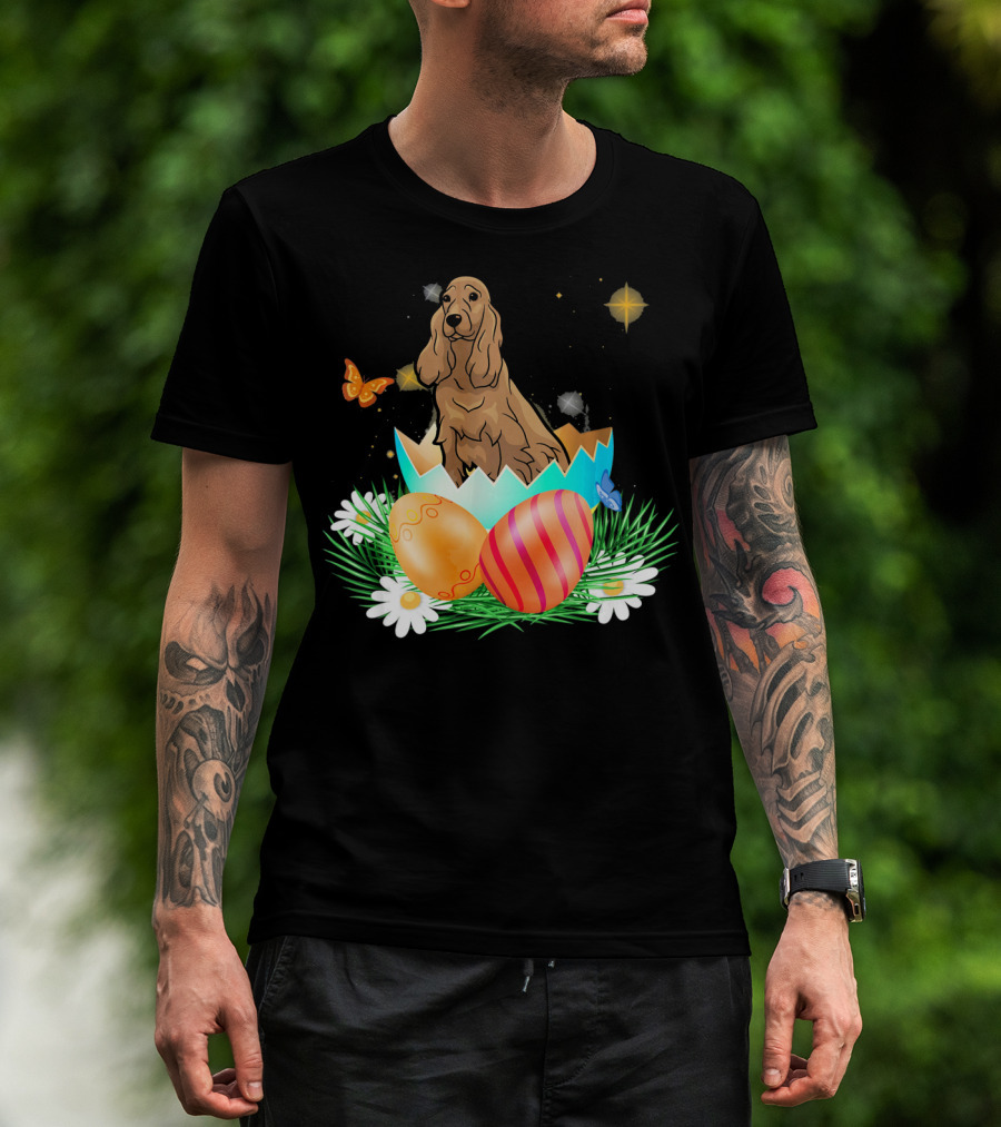 Easter Day Cocker Spaniel In Egg With Butterflies And Daisies T-Shirt