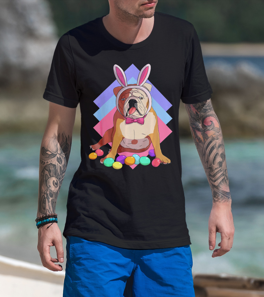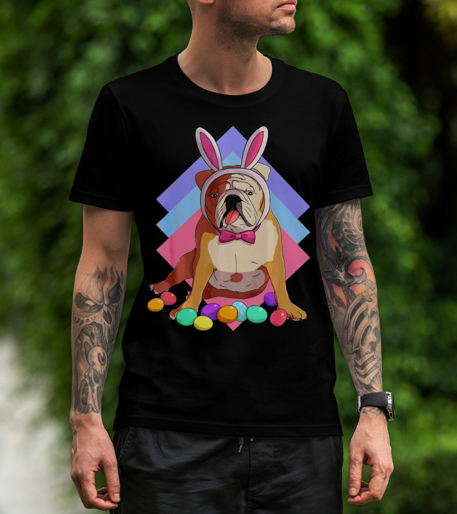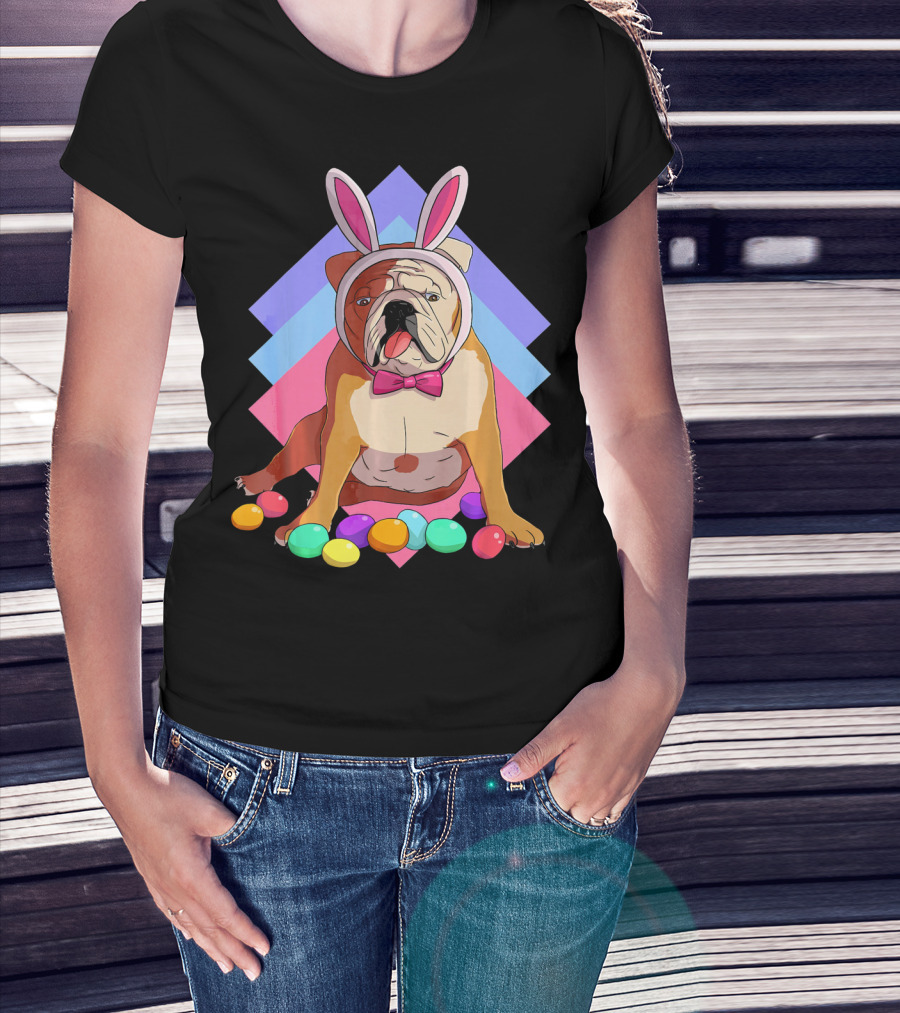 Easter Eggs Bulldog With Bunny Ears And Bowtie T-Shirt