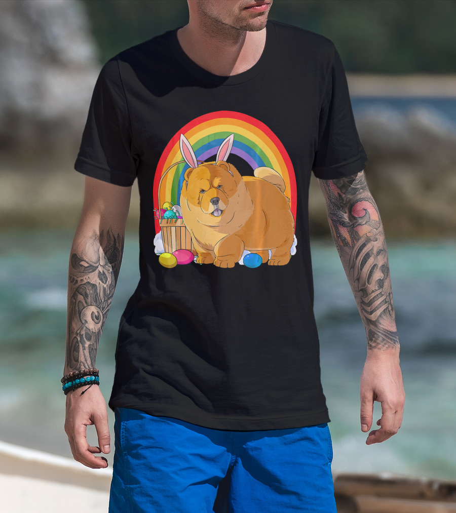 Easter Eggs Chow Chow Bunny Rabbit Dog Rainbow T-Shirt