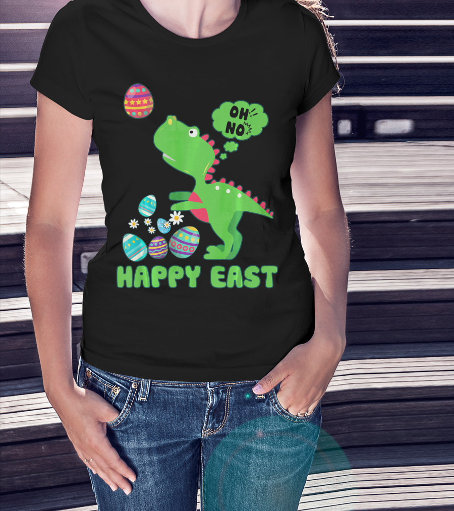 HAPPY EAST OH NO Cute Dinosaur With Easter Eggs T-Shirt