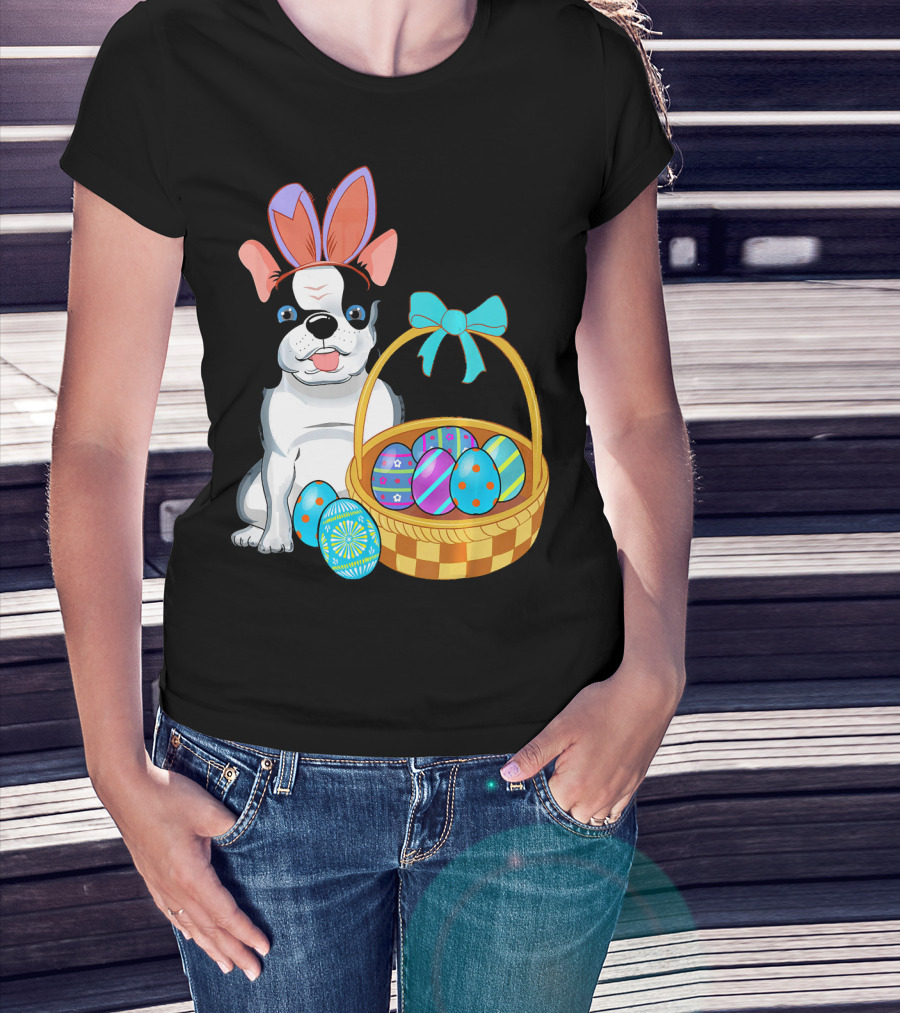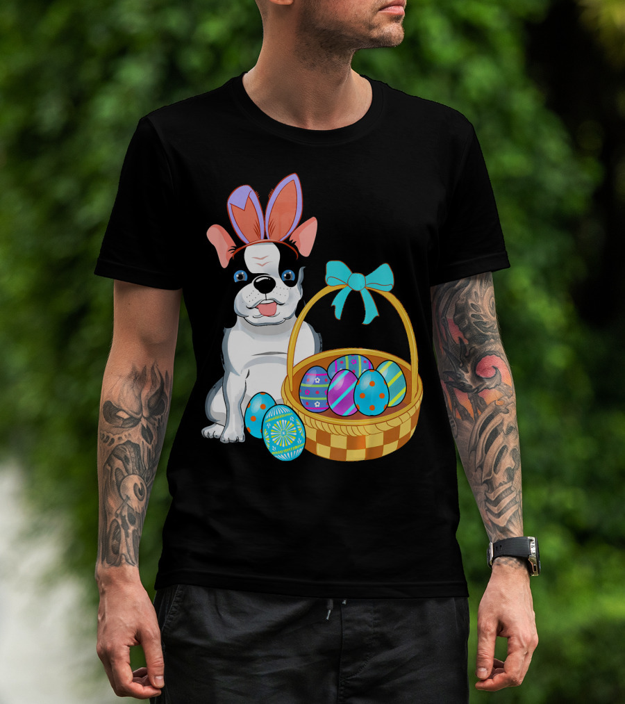 French Bulldog With Bunny Ears And Easter Egg Basket T-Shirt