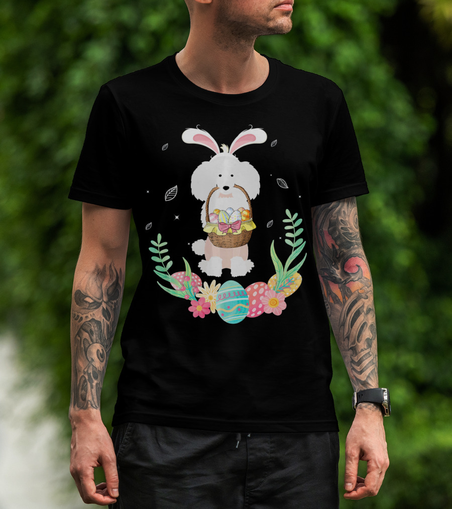 Poodle Bunny Ears Easter Egg Basket Spring Leaves T-Shirt