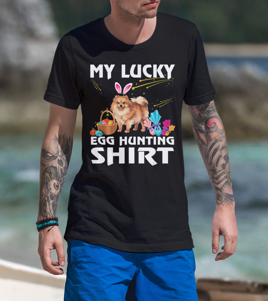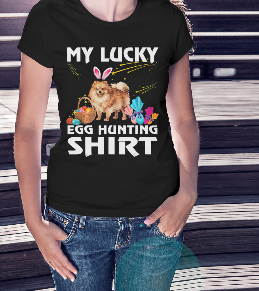 My Lucky Egg Hunting Shirt Pomeranian Dog Bunny Happy Easter T-Shirt