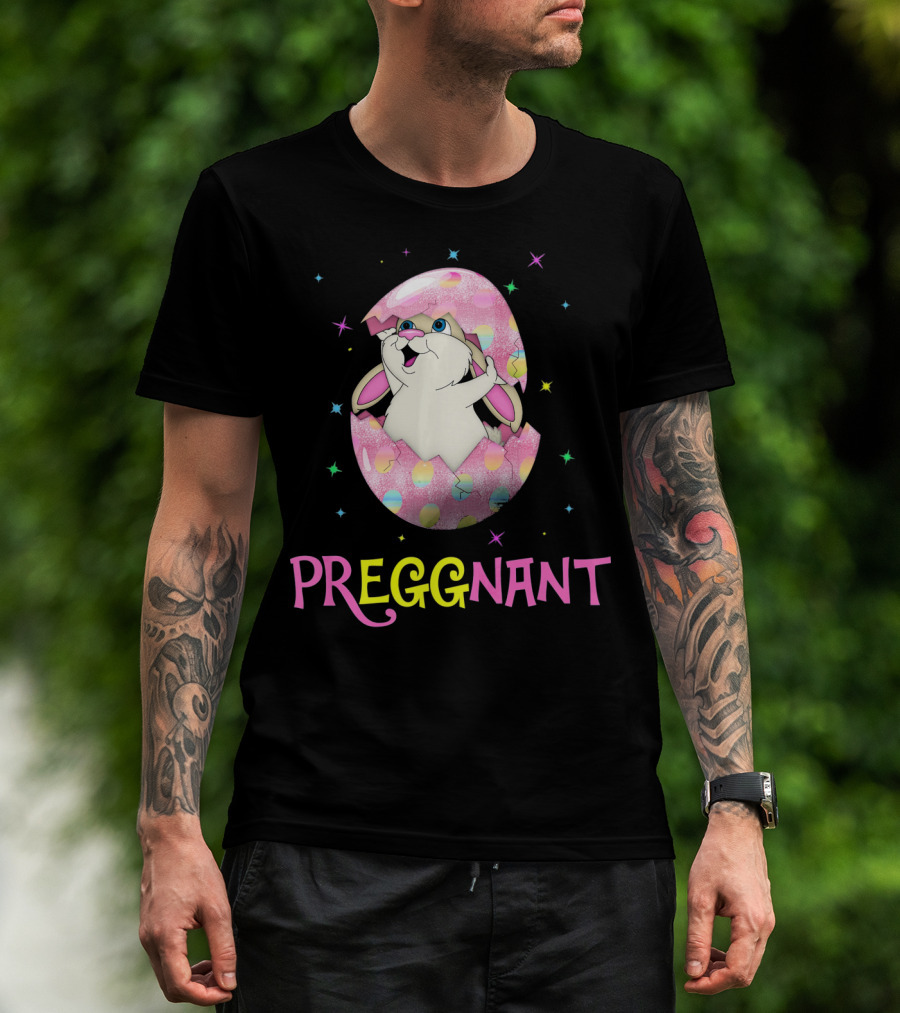 Preggnant Easter Bunny In Egg Shell With Stars T-Shirt