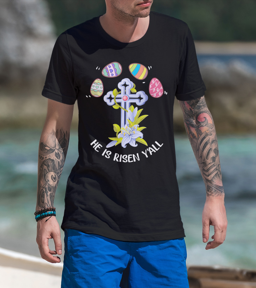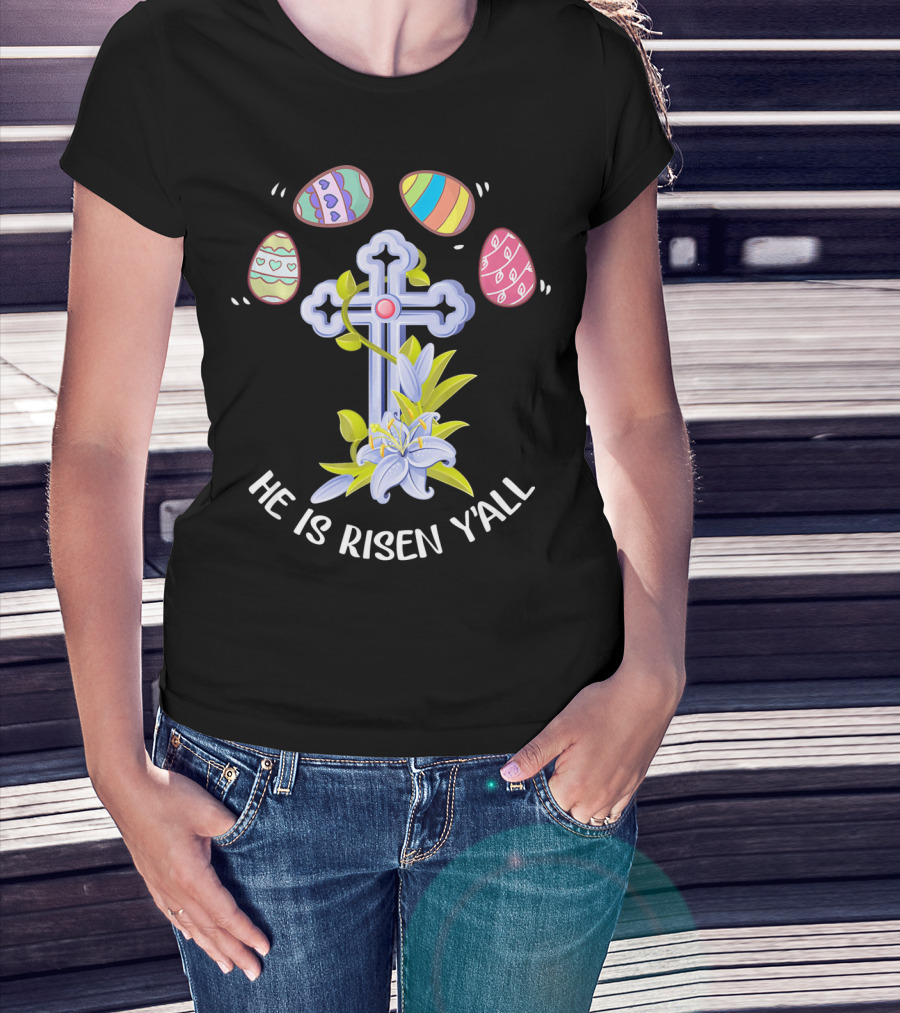 He Is Risen Y'all Easter Eggs Cross Lily T-Shirt