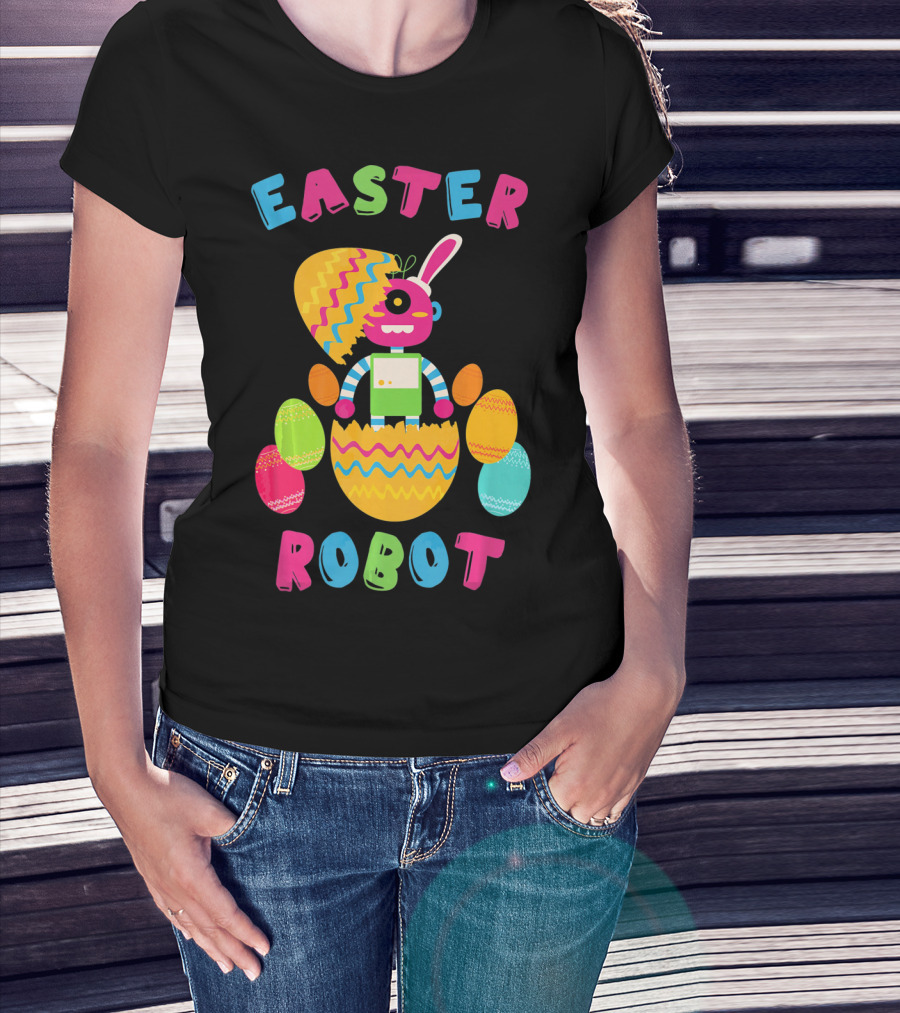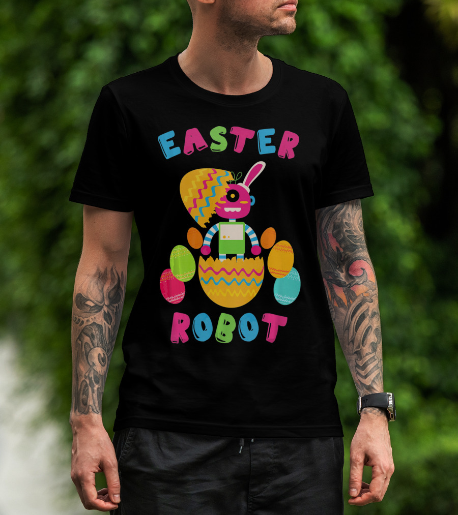 Easter Robot Bunny With Colorful Eggs T-Shirt