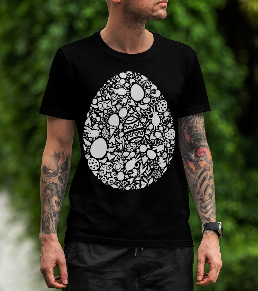 The Easter Egg Hunt Pattern with Rabbits and Spring Symbols T-shirt is designed for everyday wear and a consistent fit. Fabric is pre-shrunk ring-spun cotton with durable stitching. See the size chart below for exact measurements.