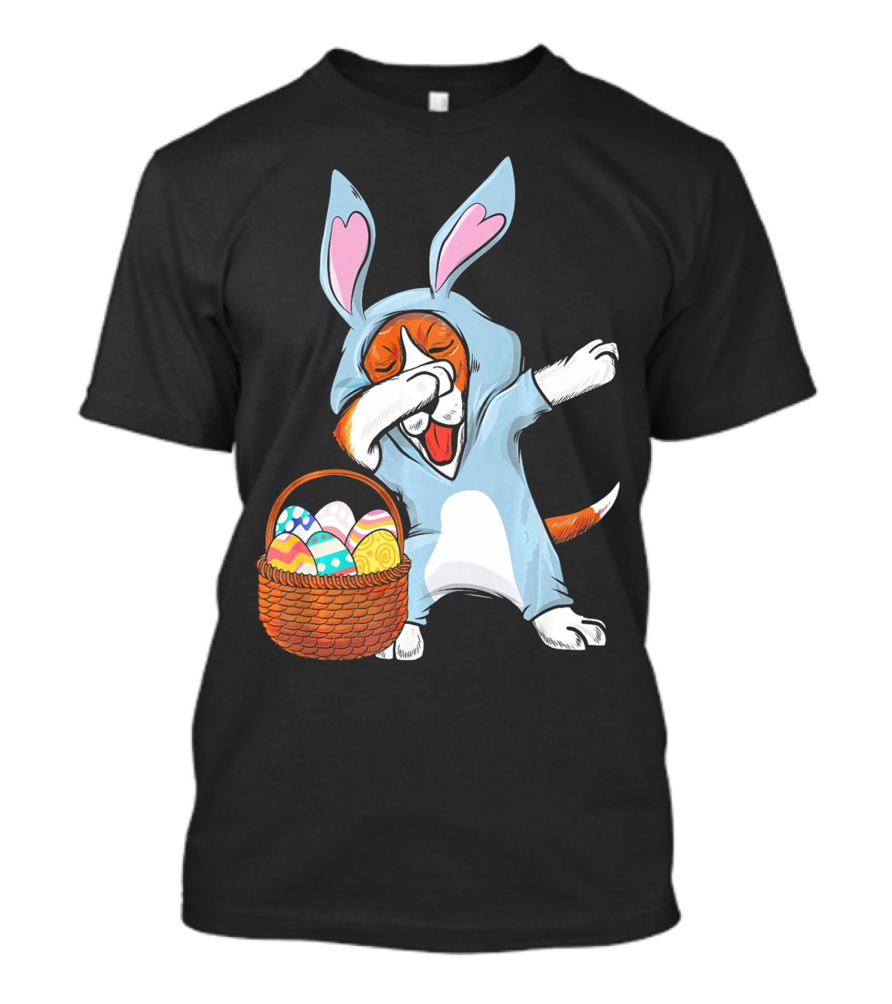 The Dabbing Easter Bunny Beagle Dog with Basket of Eggs T-shirt is designed for everyday wear and a consistent fit. Fabric is pre-shrunk ring-spun cotton with durable stitching. See the size chart below for exact measurements.