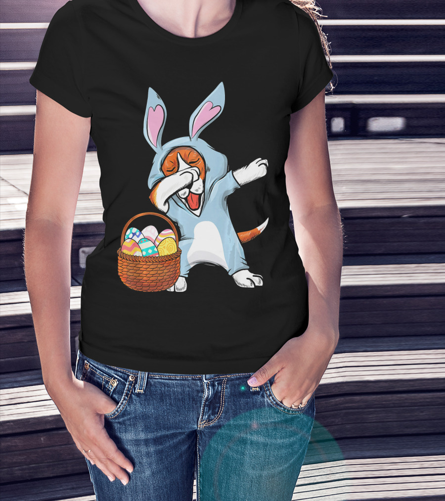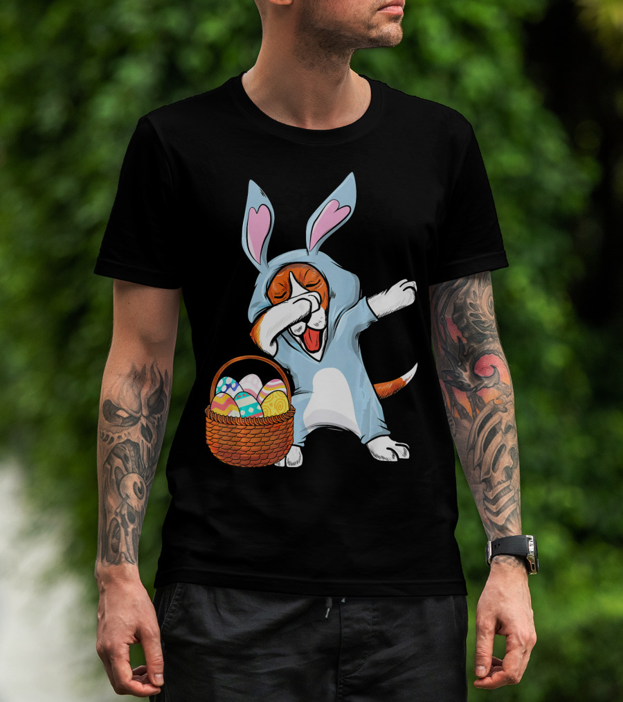Dabbing Easter Bunny Beagle Dog With Basket Of Eggs T-Shirt