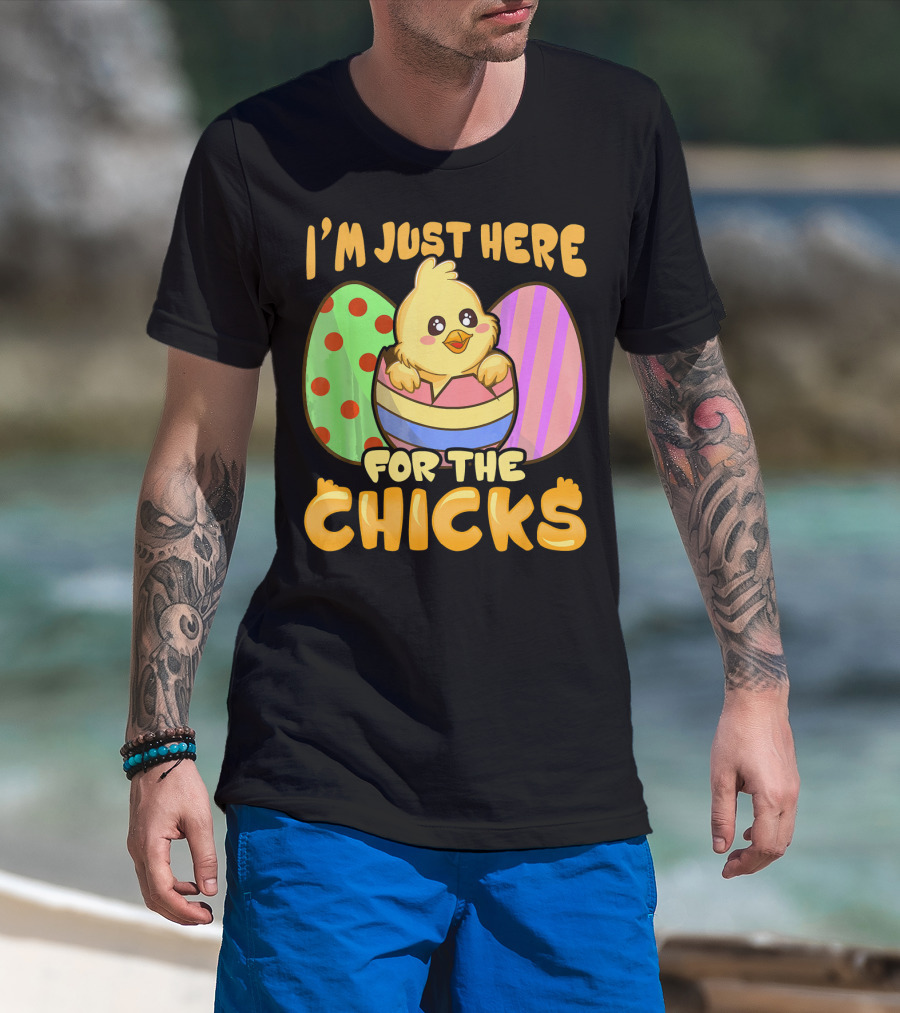 I'm Just Here For The Chicks Funny Easter Egg And Chick T-Shirt