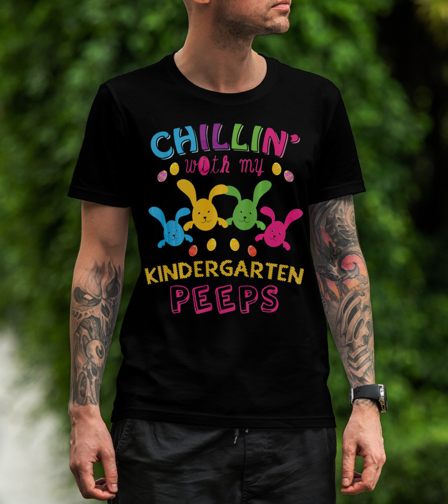 Colorful Chillin With My Kindergarten Peeps With Playful Bunny And Egg T-Shirt