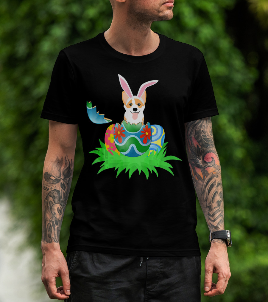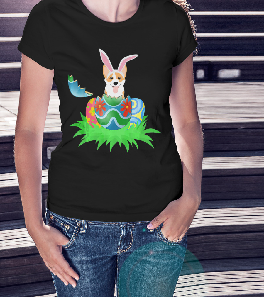Easter Corgi Bunny With Colorful Easter Egg Hunt T-Shirt
