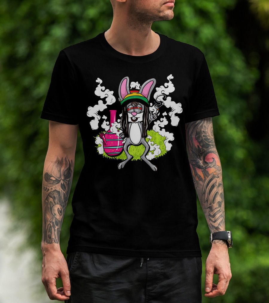 Easter Bunny Cannabis Humor Rasta Vibes With Smoke And Bong T-Shirt