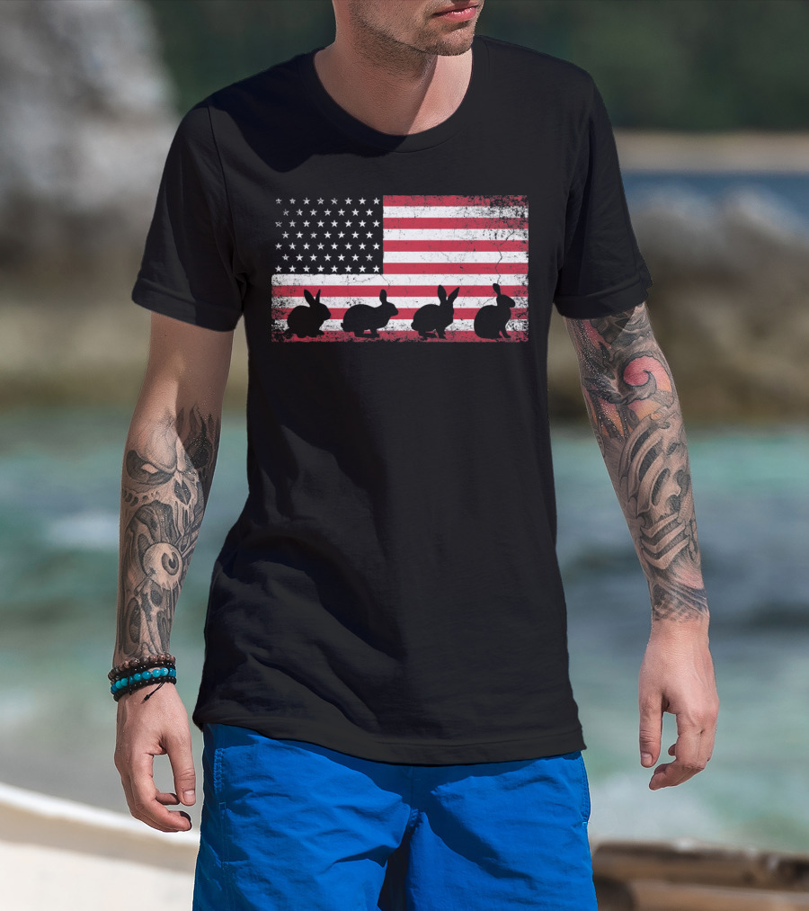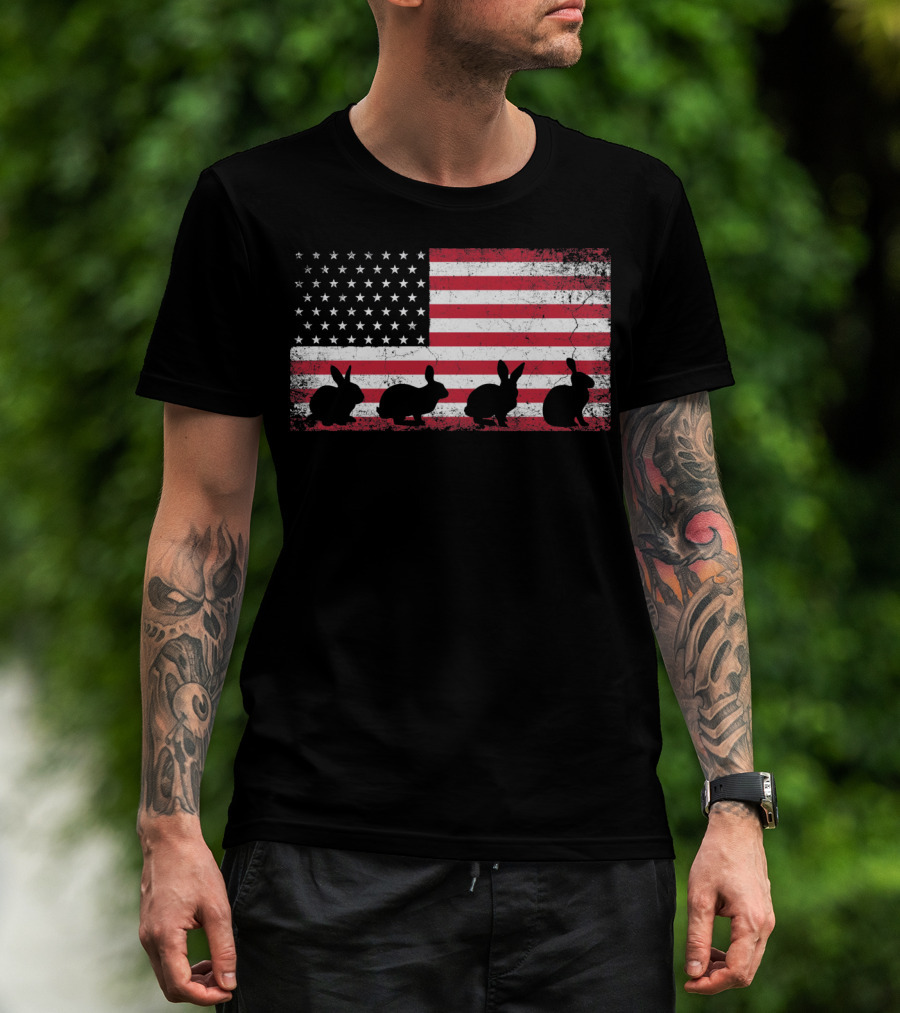 American Flag Bunny Rabbit Silhouettes Retro Easter T-Shirt