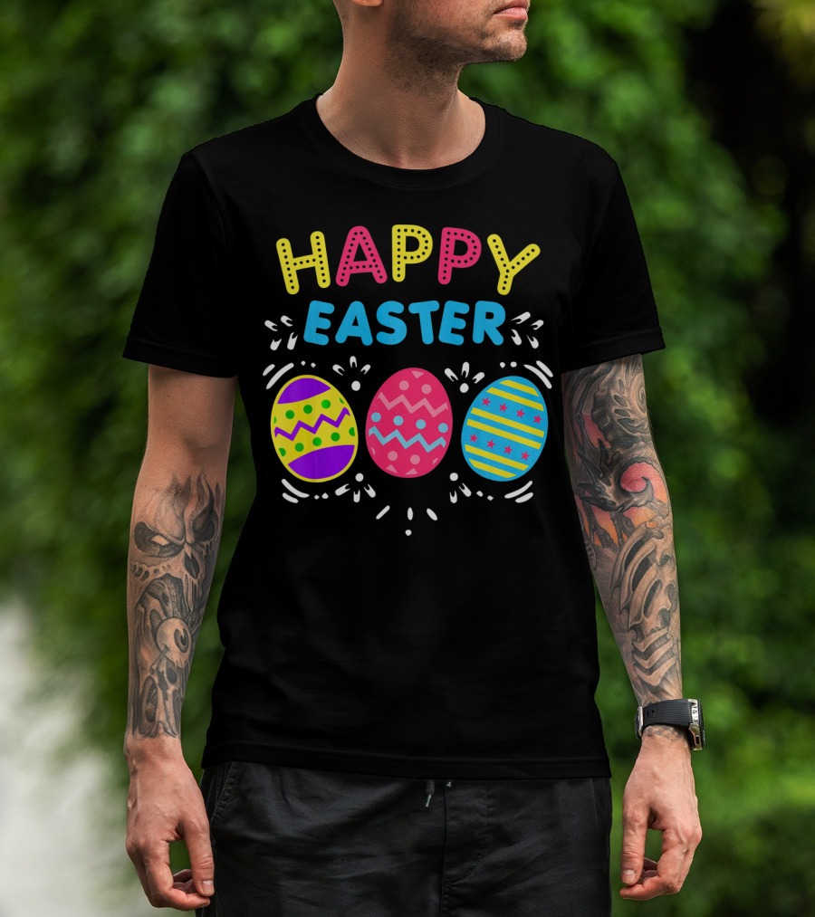 Colorful Happy Easter With Decorative Dye Eggs T-Shirt