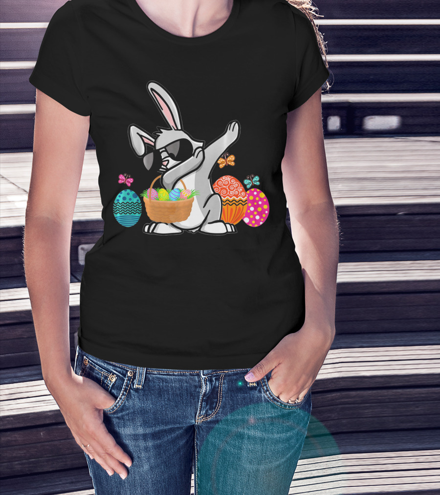 Dabbing Easter Bunny With Sunglasses And Basket Among Colorful Easter Eggs T-Shirt