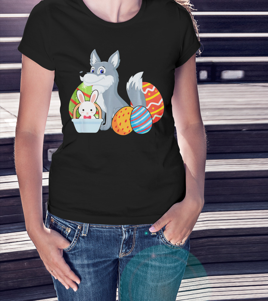 Easter Wolf Happy Bunny With Colorful Eggs T-Shirt