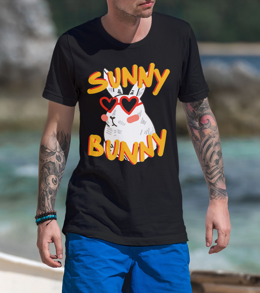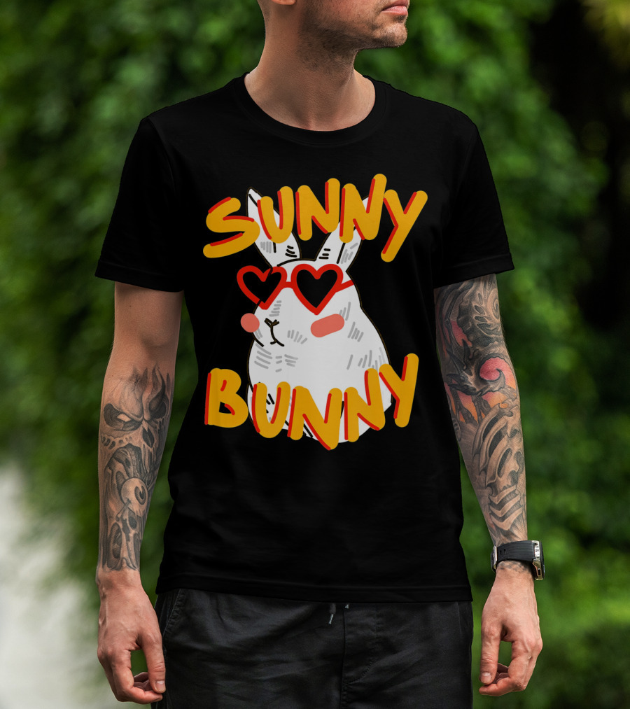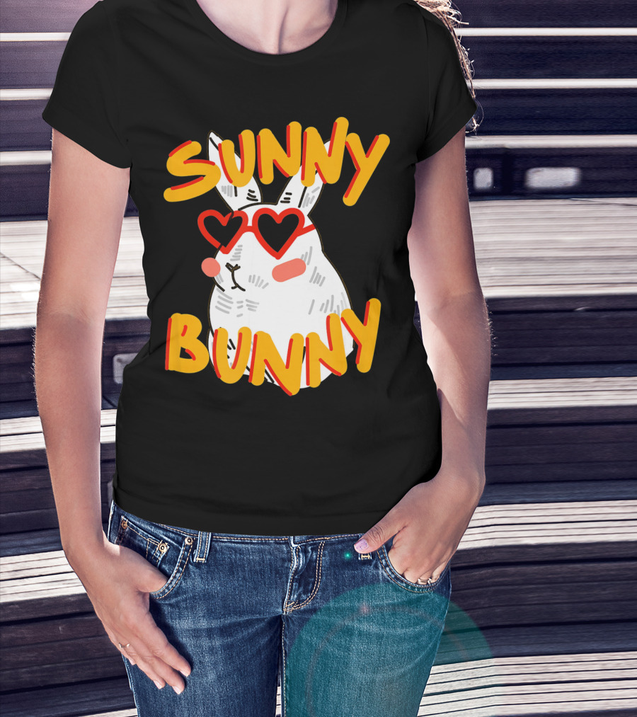 The SUNNY BUNNY Cute Happy Easter Heartglass T-shirt is designed for everyday wear and a consistent fit. Fabric is pre-shrunk ring-spun cotton with durable stitching. See the size chart below for exact measurements.