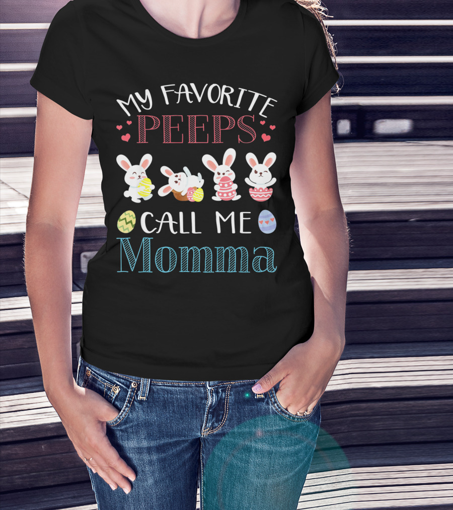 MY FAVORITE PEEPS CALL ME MOMMA Bunnies Easter Eggs Hearts T-Shirt