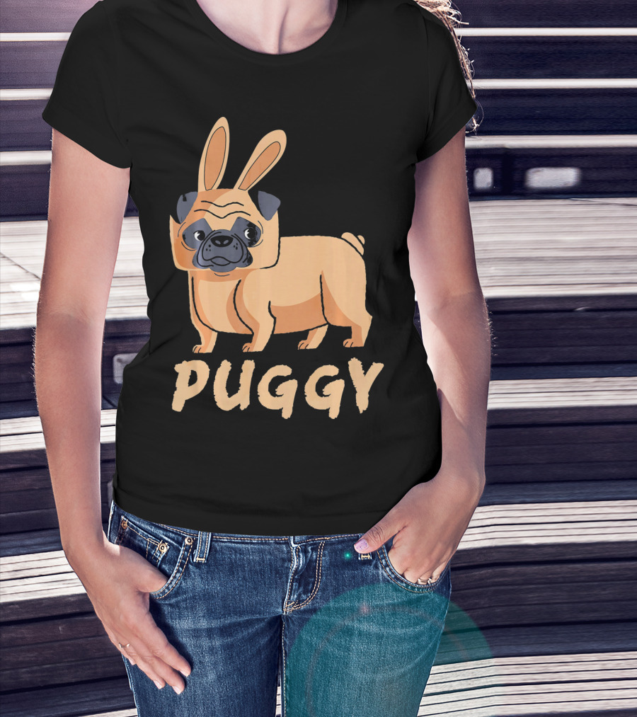 Puggy Easter Dog Pug With Bunny Ears T-Shirt