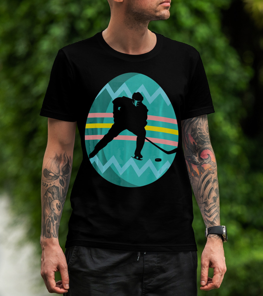 Easter Egg Hockey Silhouette Athlete Zigzag Stripes T-Shirt
