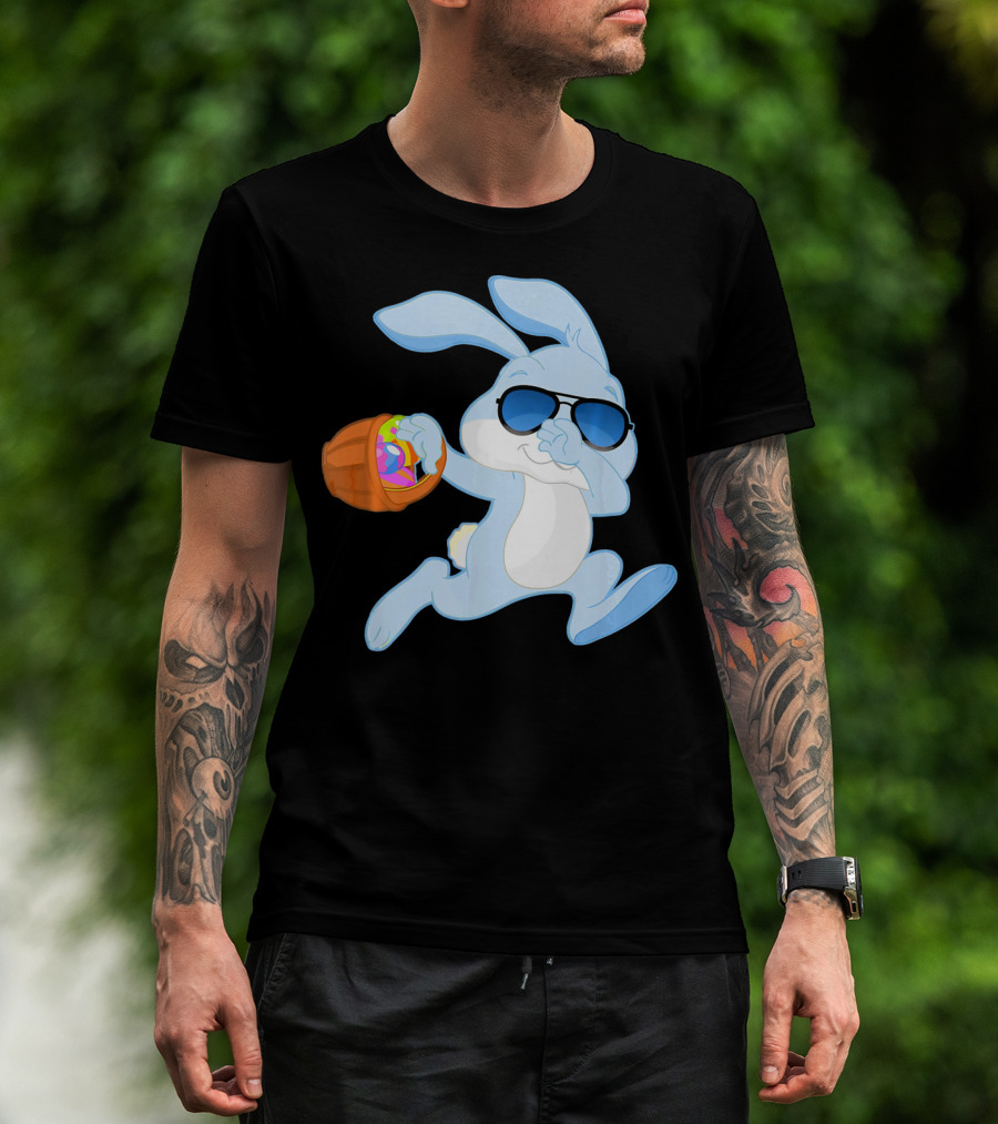 Easter Rabbit Sunglasses Holding Egg Basket T-Shirt
