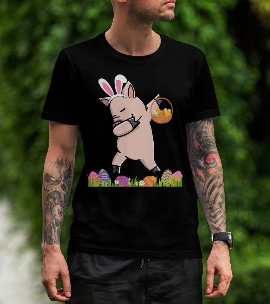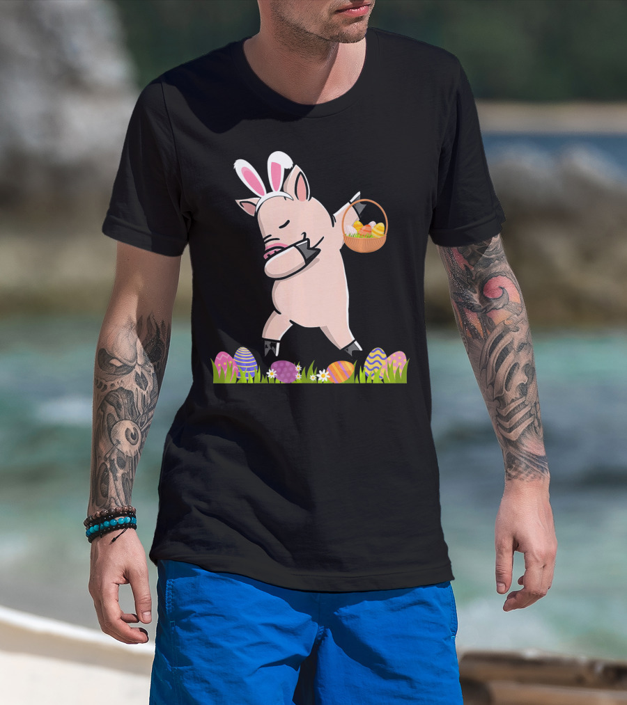 Dabbing Mini Pig With Easter Basket And Colorful Eggs Happy Easter Day T-Shirt
