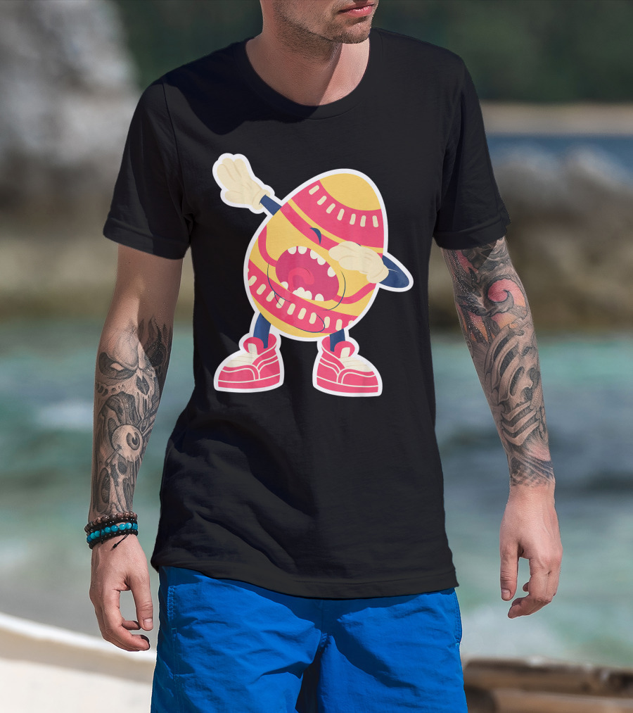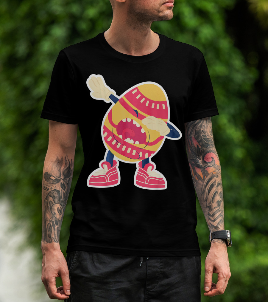 The Dabbing Easter Egg in Sneakers T-shirt is designed for everyday wear and a consistent fit. Fabric is pre-shrunk ring-spun cotton with durable stitching. See the size chart below for exact measurements.