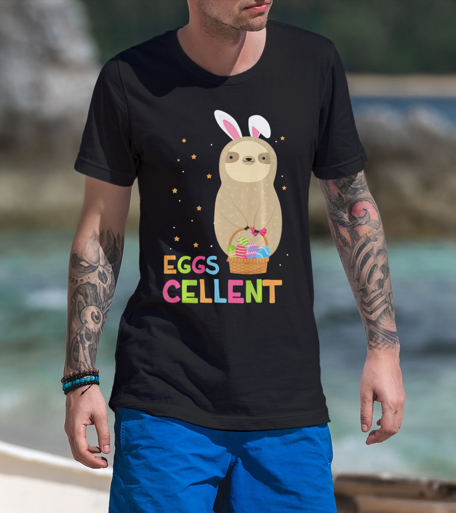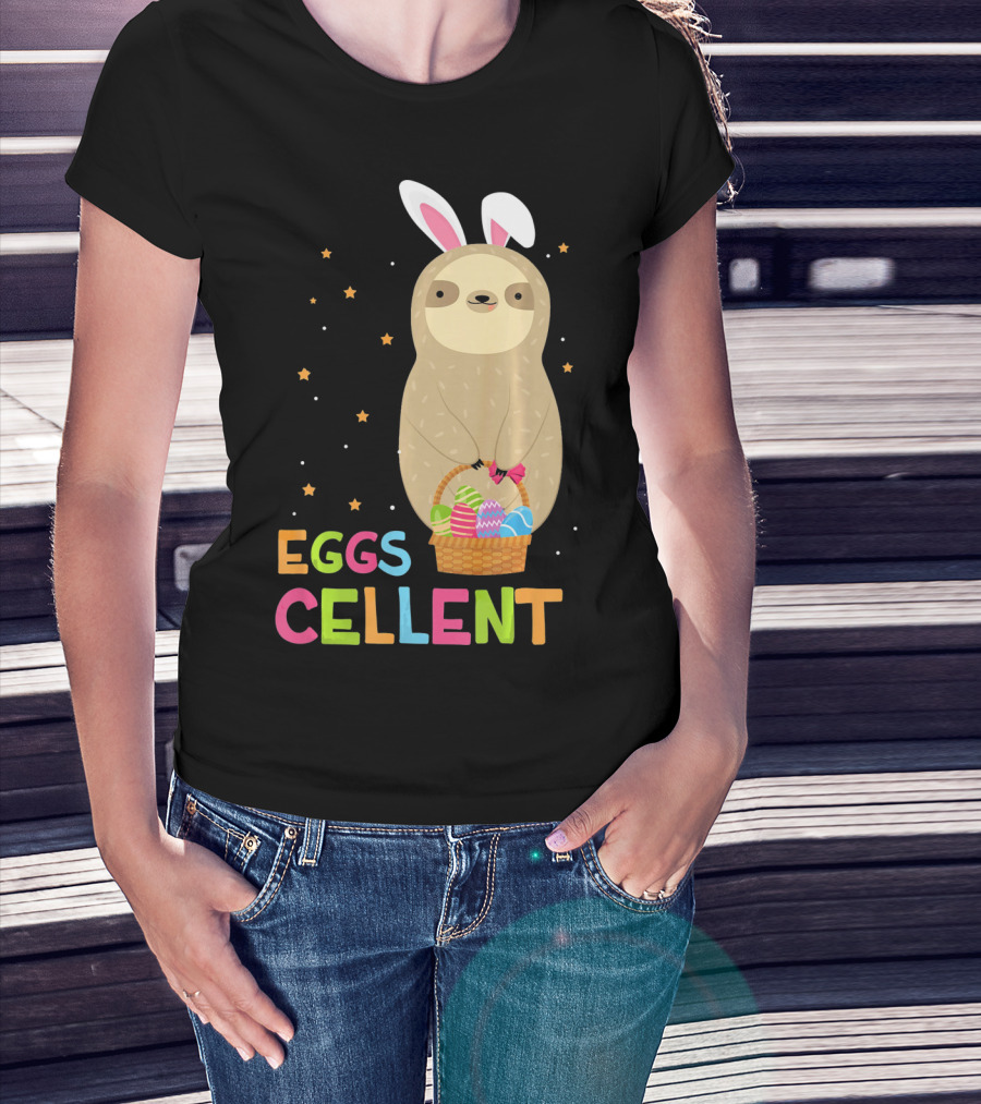Sloth In Bunny Ears Holding Easter Eggs Cellent Basket T-Shirt
