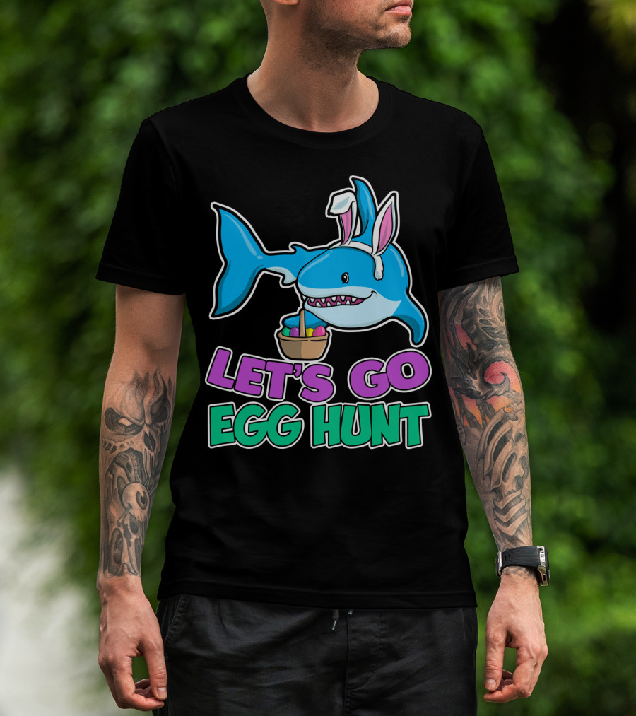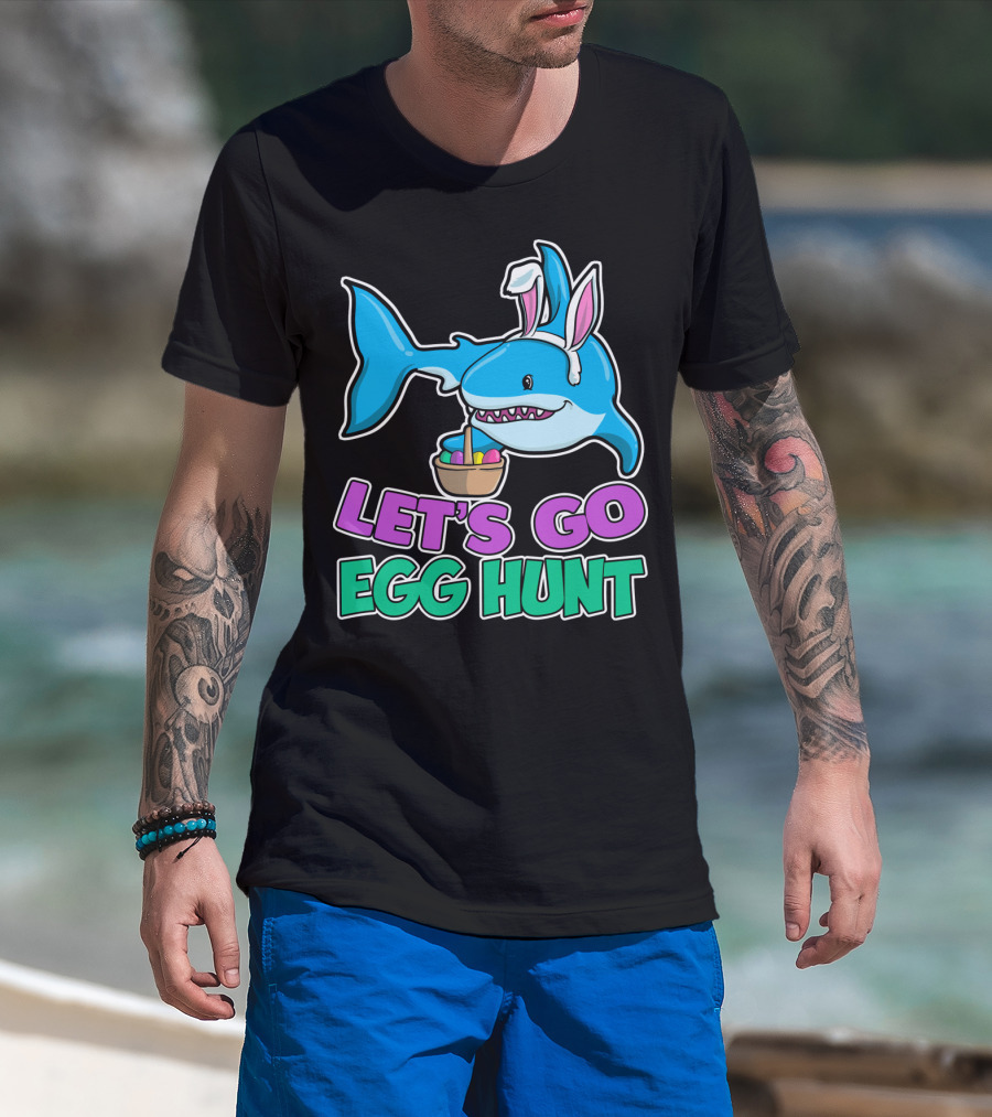 LET'S GO EGG HUNT HAPPY EASTER SHARK WITH EASTER EGGS BASKET T-Shirt