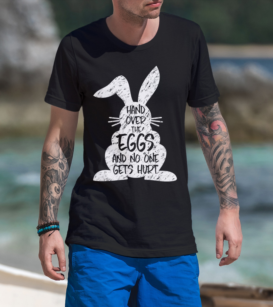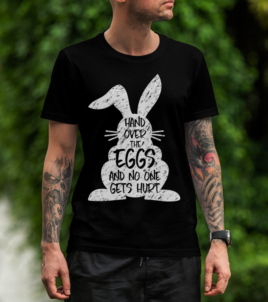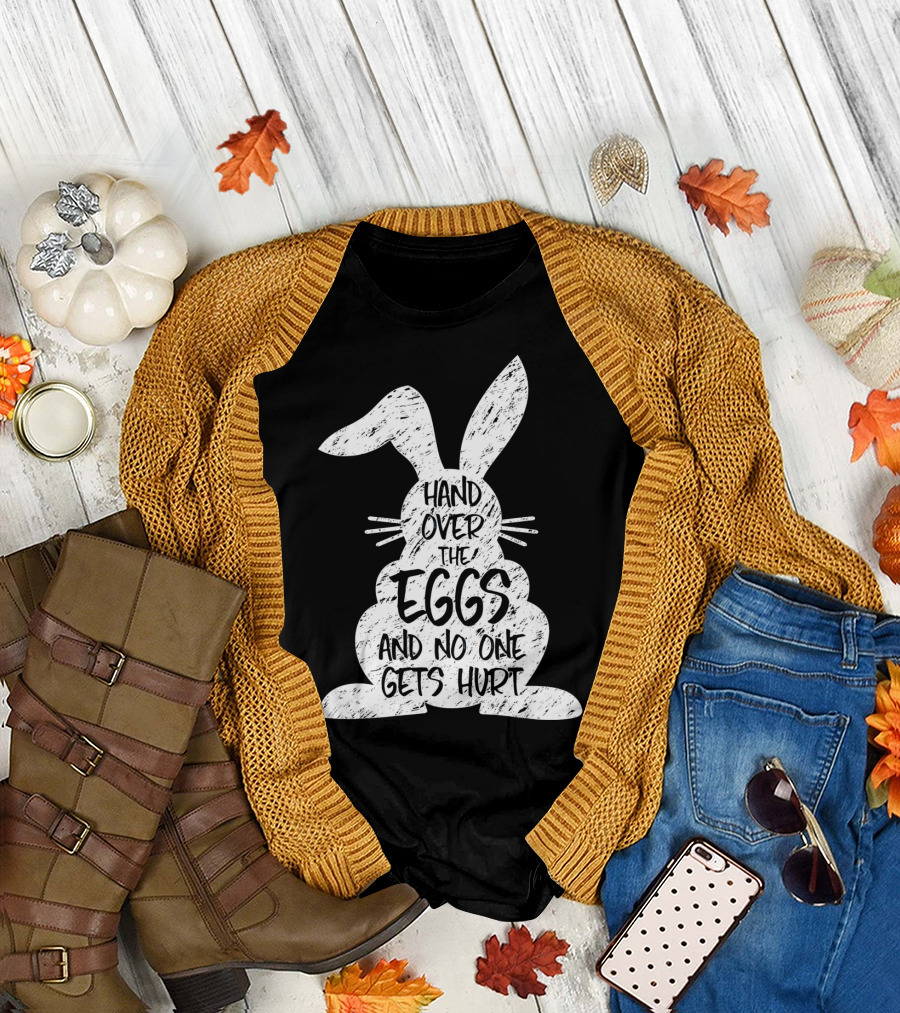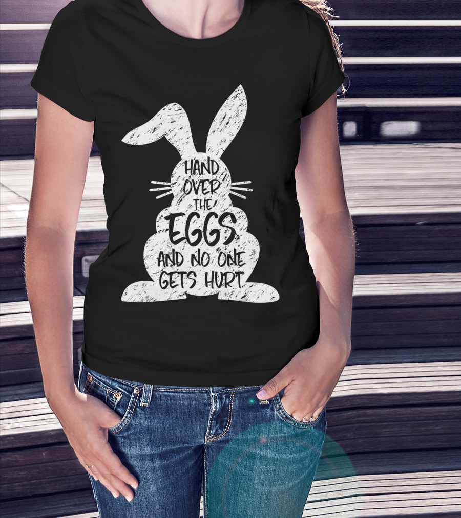 Hand Over The Eggs And No One Gets Hurt Easter Rabbit Eggs Funny Easter T-Shirt