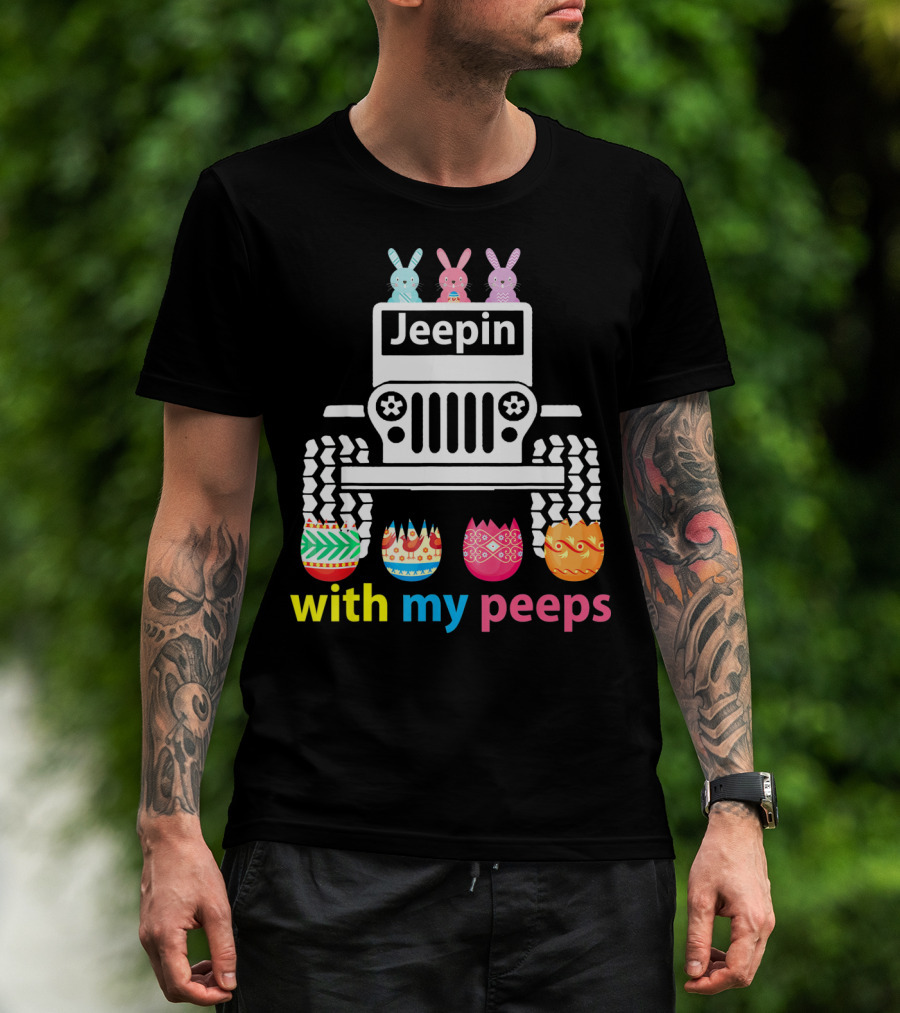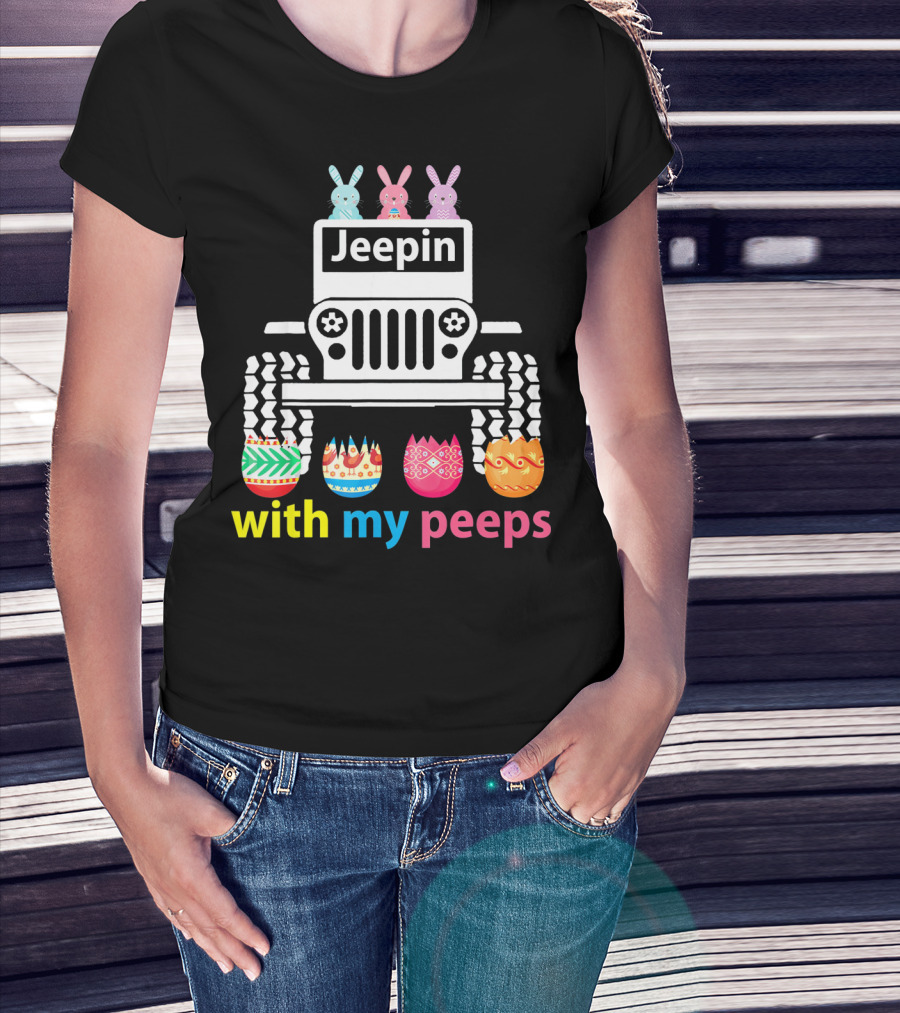 Jeepin With My Peeps Rabbit Riding Jeep Easter Eggs T-Shirt