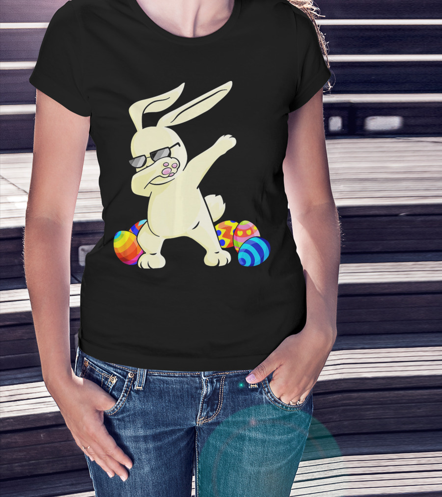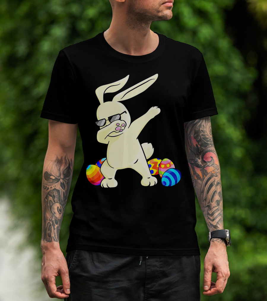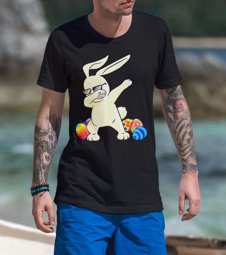 Dabbing Easter Bunny With Sunglasses And Colorful Eggs T-Shirt