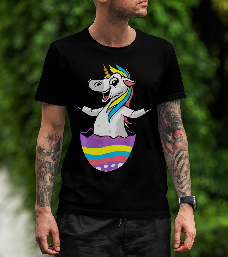 Easter Unicorn In Colorful Striped Egg T-Shirt