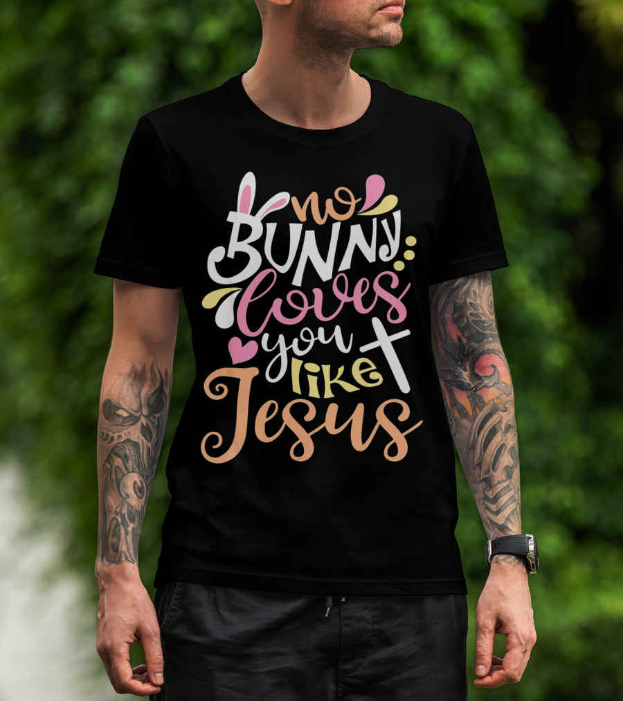 The No Bunny Loves You Like Jesus Cross Heart T-shirt is designed for everyday wear and a consistent fit. Fabric is pre-shrunk ring-spun cotton with durable stitching. See the size chart below for exact measurements.