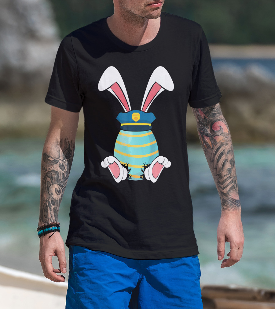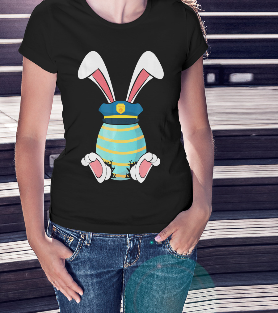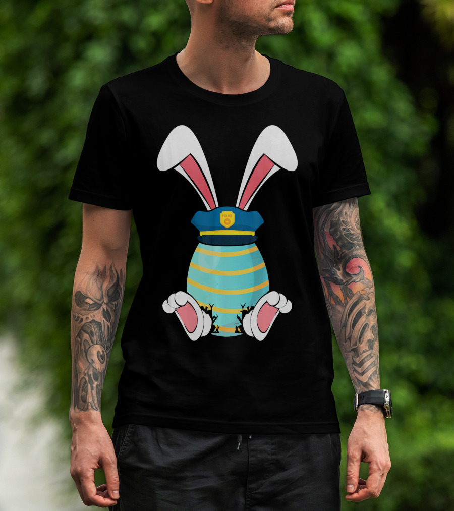 Bunny Easter Egg With Police Hat And Bunny Ears T-Shirt