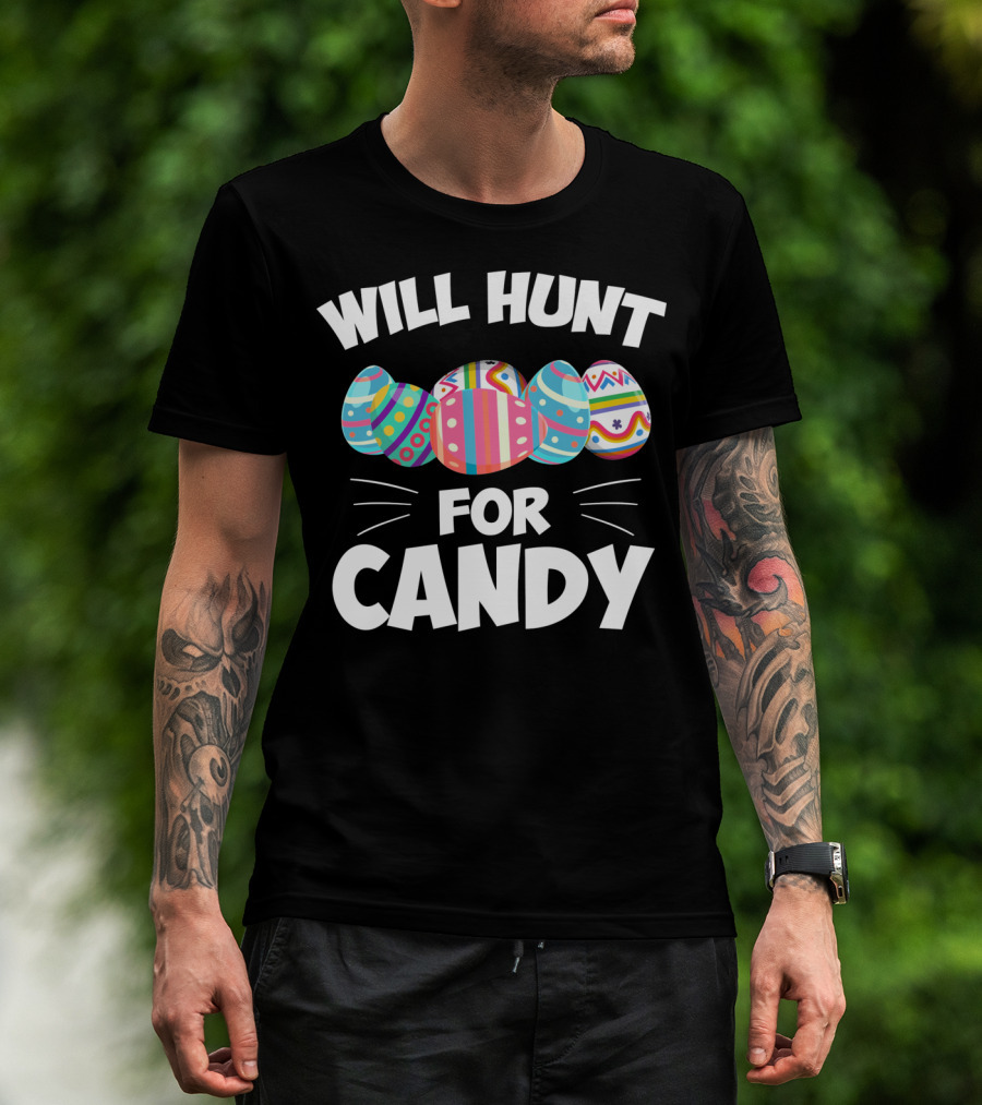 The Will Hunt for Candy Easter Eggs T-shirt is designed for everyday wear and a consistent fit. Fabric is pre-shrunk ring-spun cotton with durable stitching. See the size chart below for exact measurements.