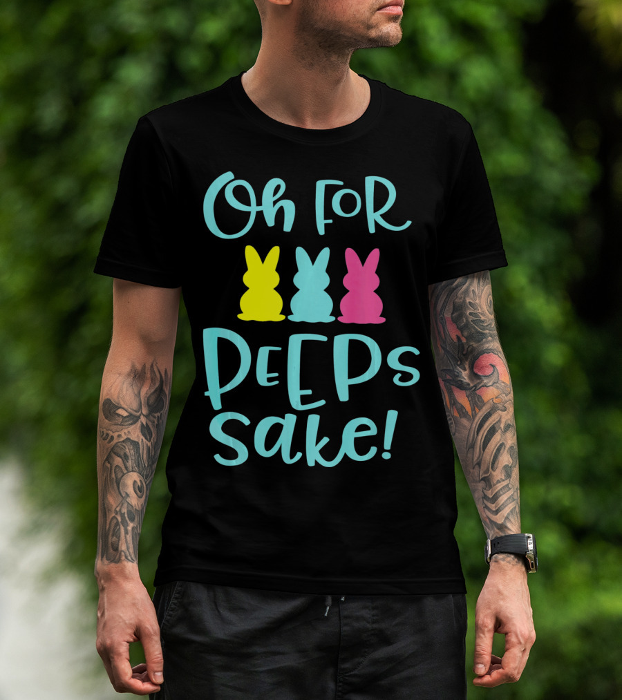 The Oh For Peeps Sake Funny Easter T-shirt is designed for everyday wear and a consistent fit. Fabric is pre-shrunk ring-spun cotton with durable stitching. See the size chart below for exact measurements.
