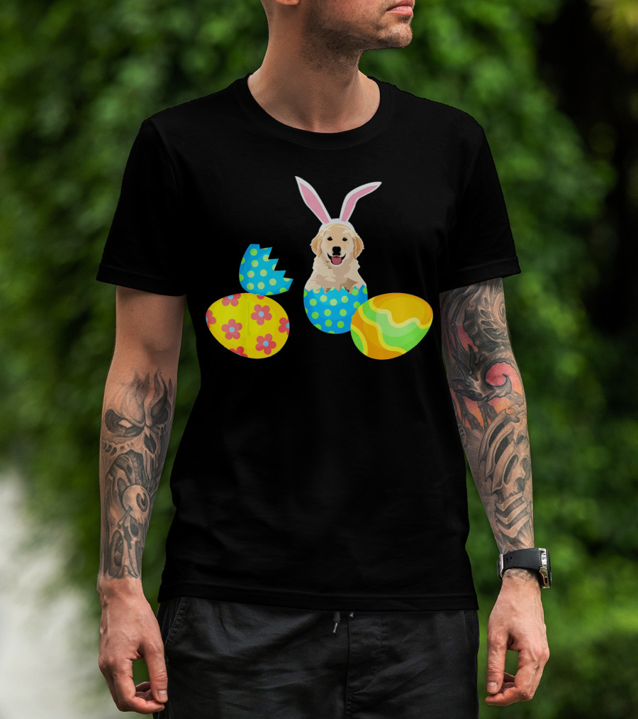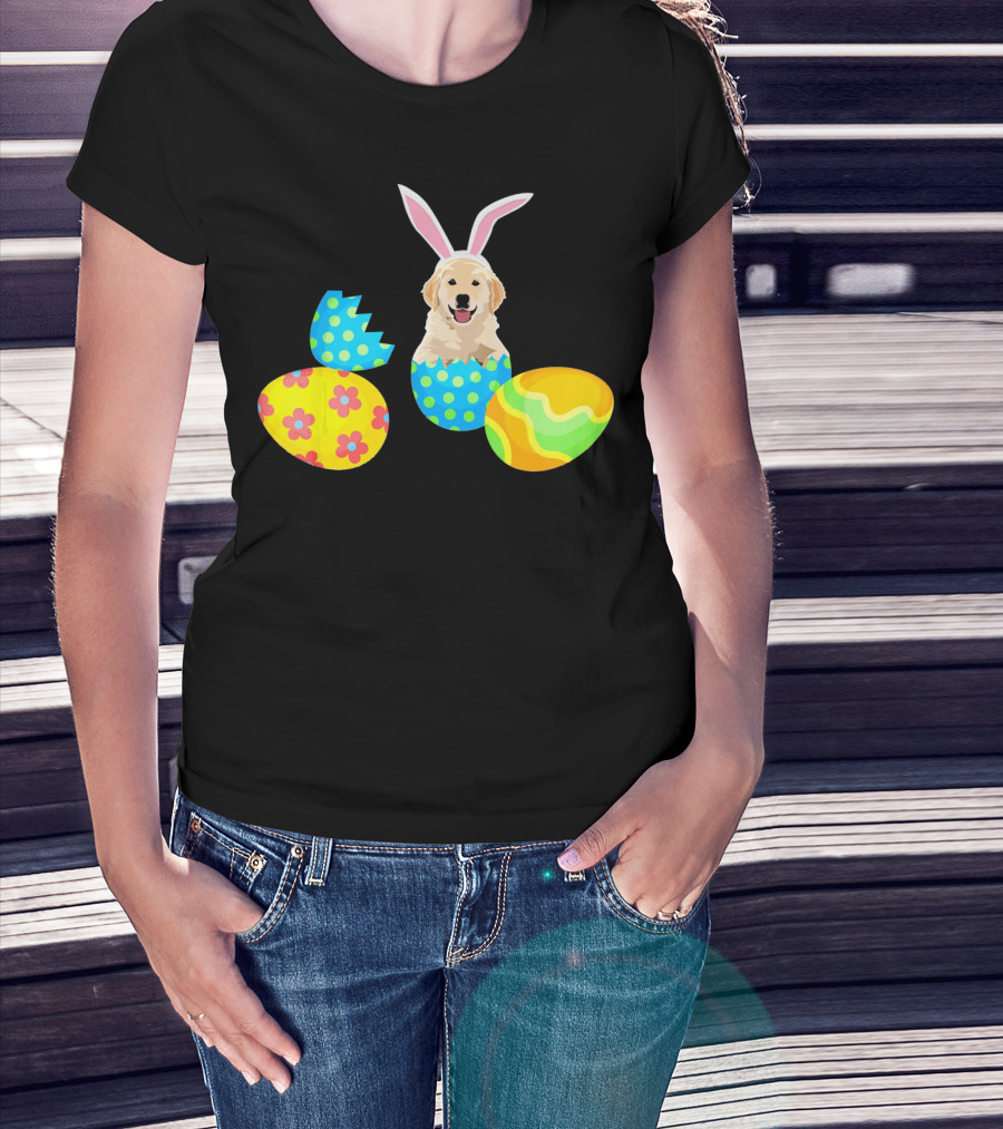 Labrador In Easter Eggs With Bunny Ears And Colorful T-Shirt
