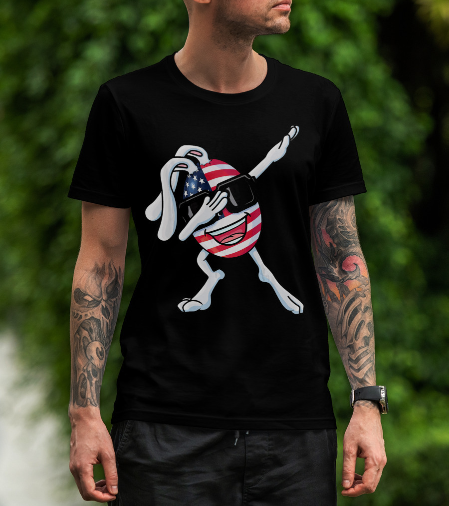 Funny Dabbing Easter Bunny American Flag Egg USA T-Shirt