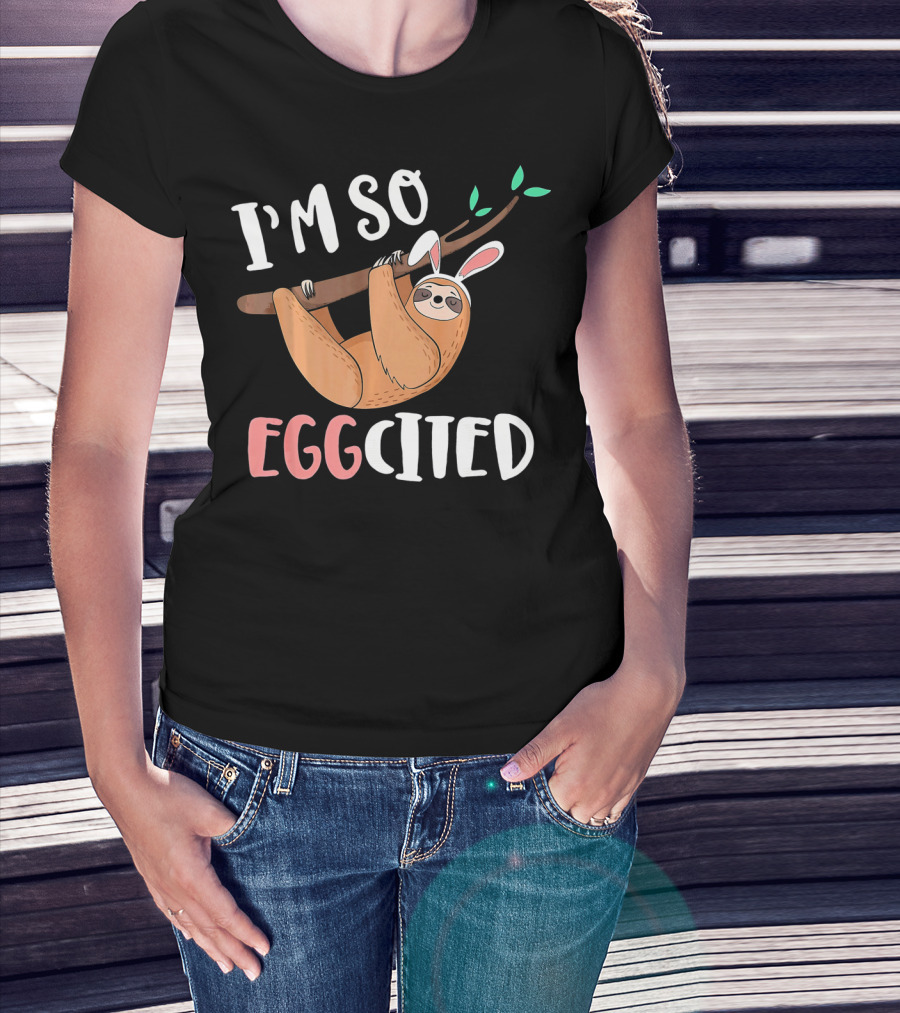 I'm So Eggcited Sloth With Easter Bunny Ears T-Shirt