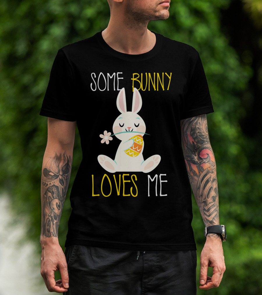 Some Bunny Loves Me Easter Bunny With Egg And Flower T-Shirt