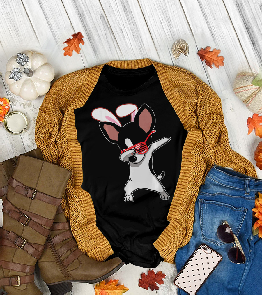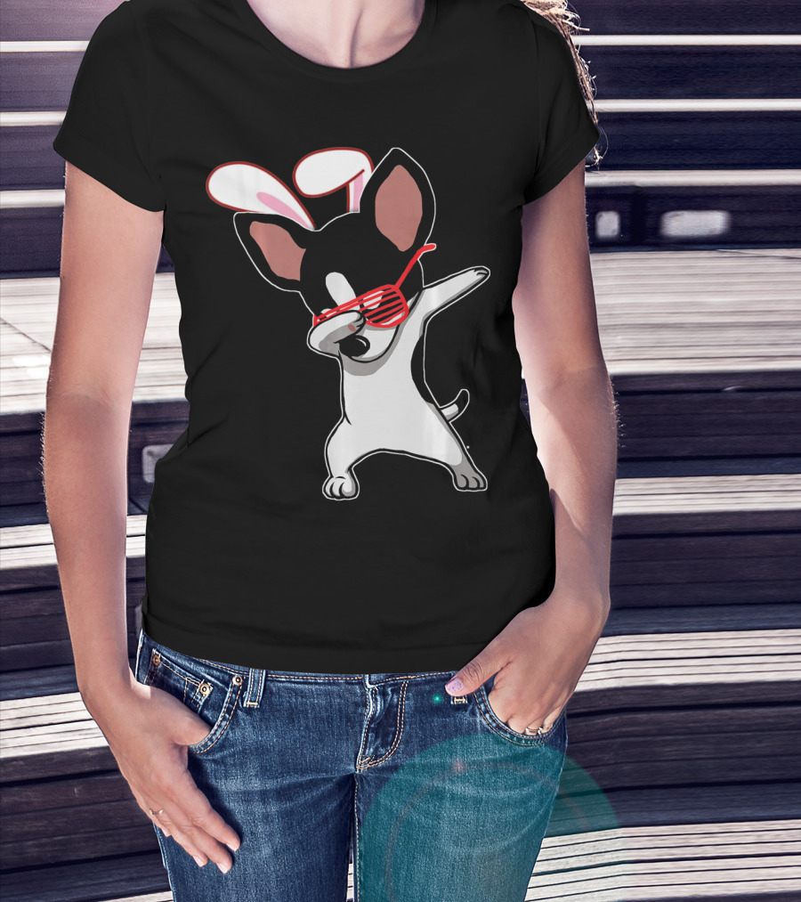 Easter Bunny Dabbing Chihuahua With Bunny Ears And Sunglasses T-Shirt