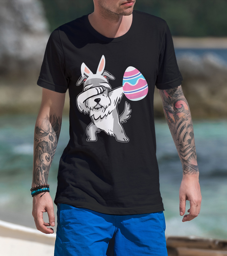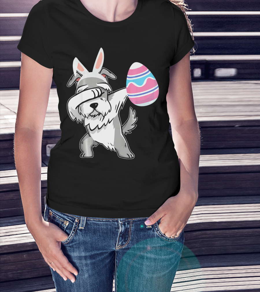 Easter Bunny Ears Schnauzer Dog Dabbing With Colorful Egg T-Shirt