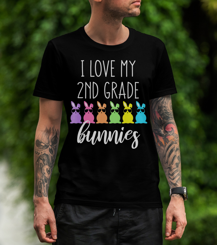The I Love My 2nd Grade Bunnies T-shirt is designed for everyday wear and a consistent fit. Fabric is pre-shrunk ring-spun cotton with durable stitching. See the size chart below for exact measurements.