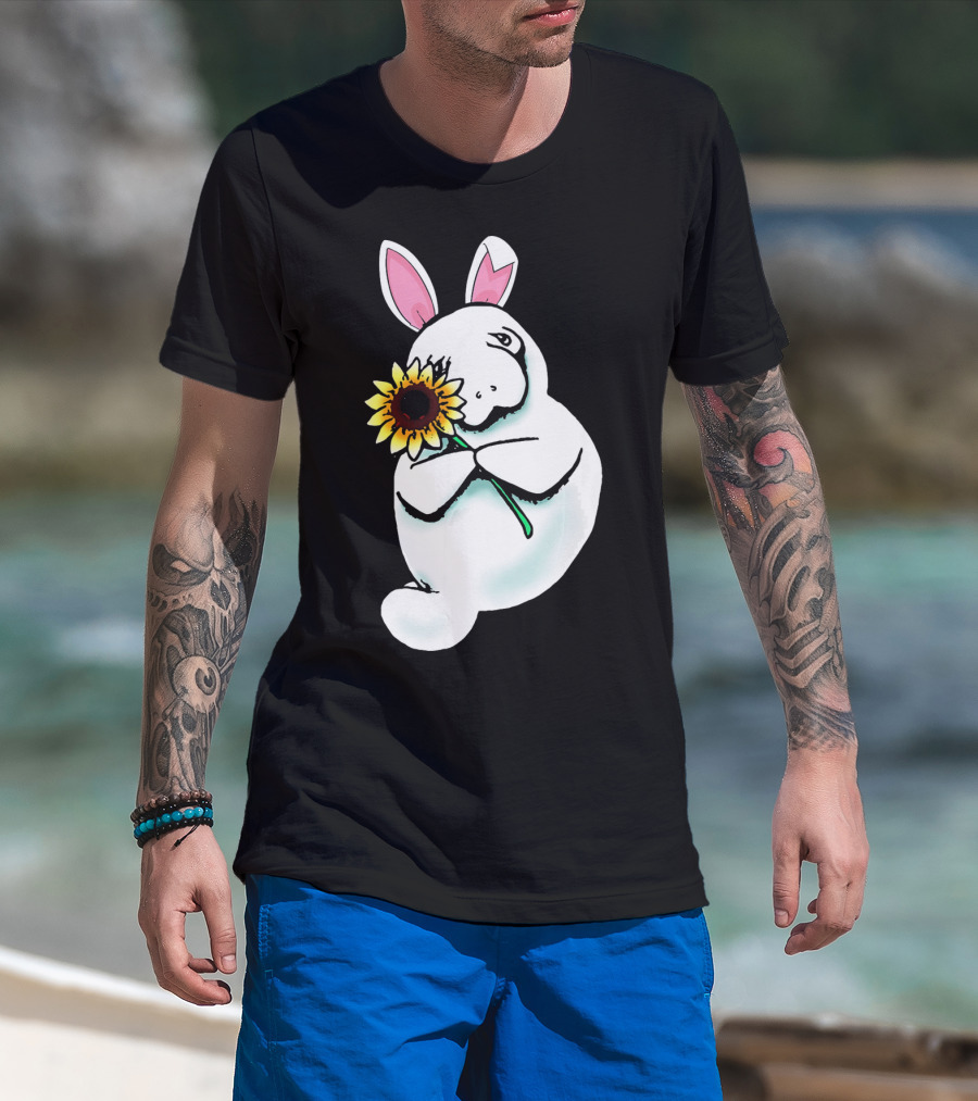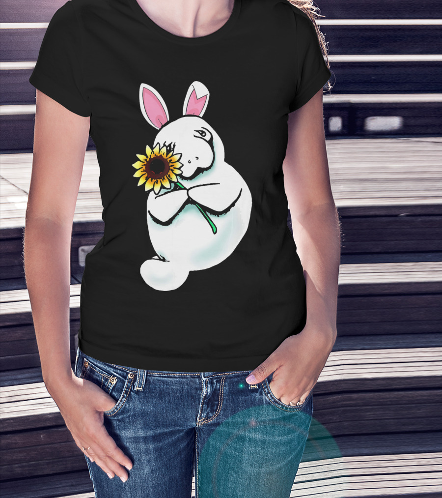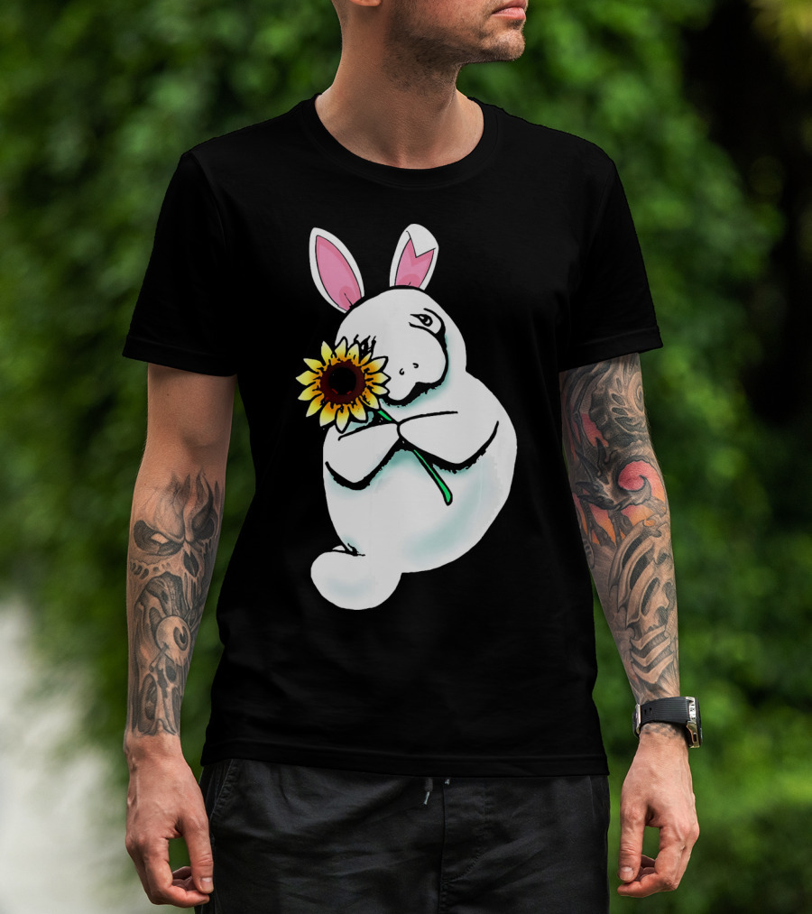 The Sunflower Hugging Manatee Bunny T-shirt is designed for everyday wear and a consistent fit. Fabric is pre-shrunk ring-spun cotton with durable stitching. See the size chart below for exact measurements.