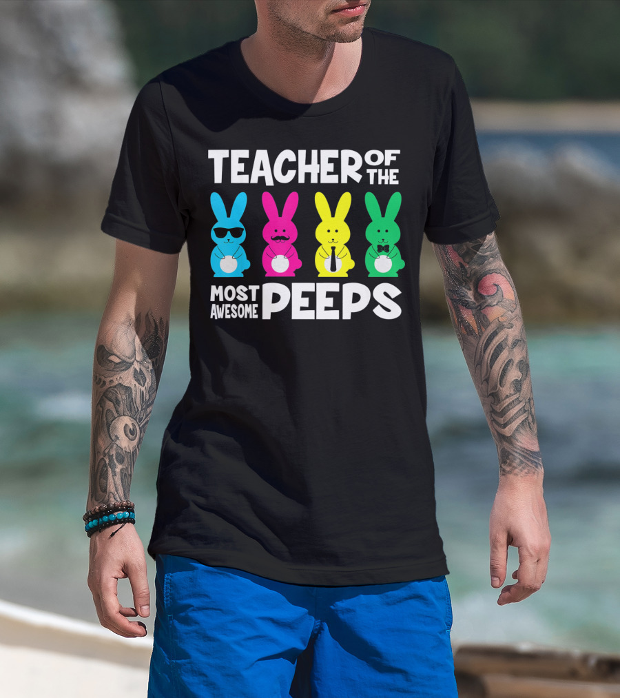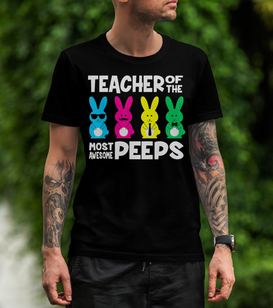 TEACHER OF THE MOST AWESOME PEEPS Colorful Bunnies With Sunglasses And Ties T-Shirt