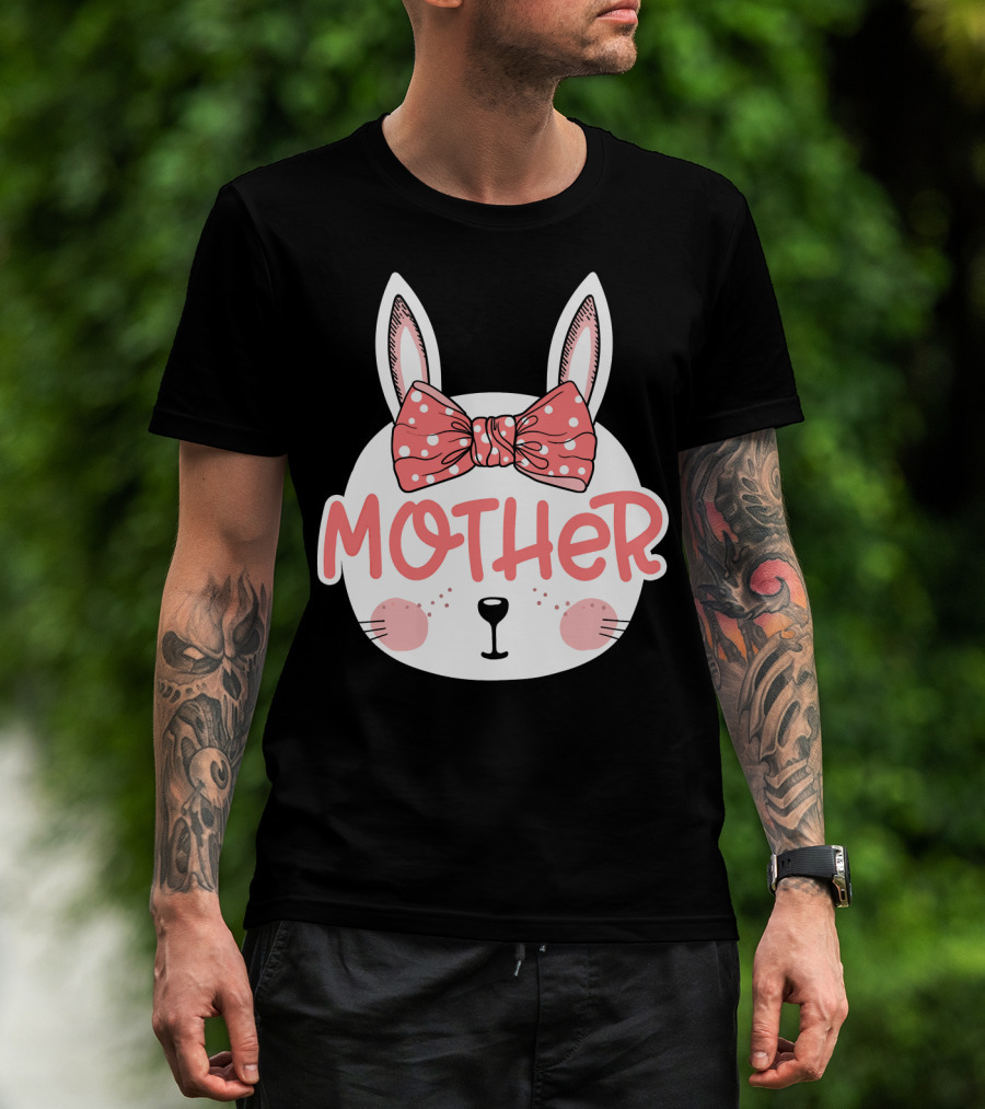 Easter Bunny Mother Pink Bow Ears Cute Face T-Shirt